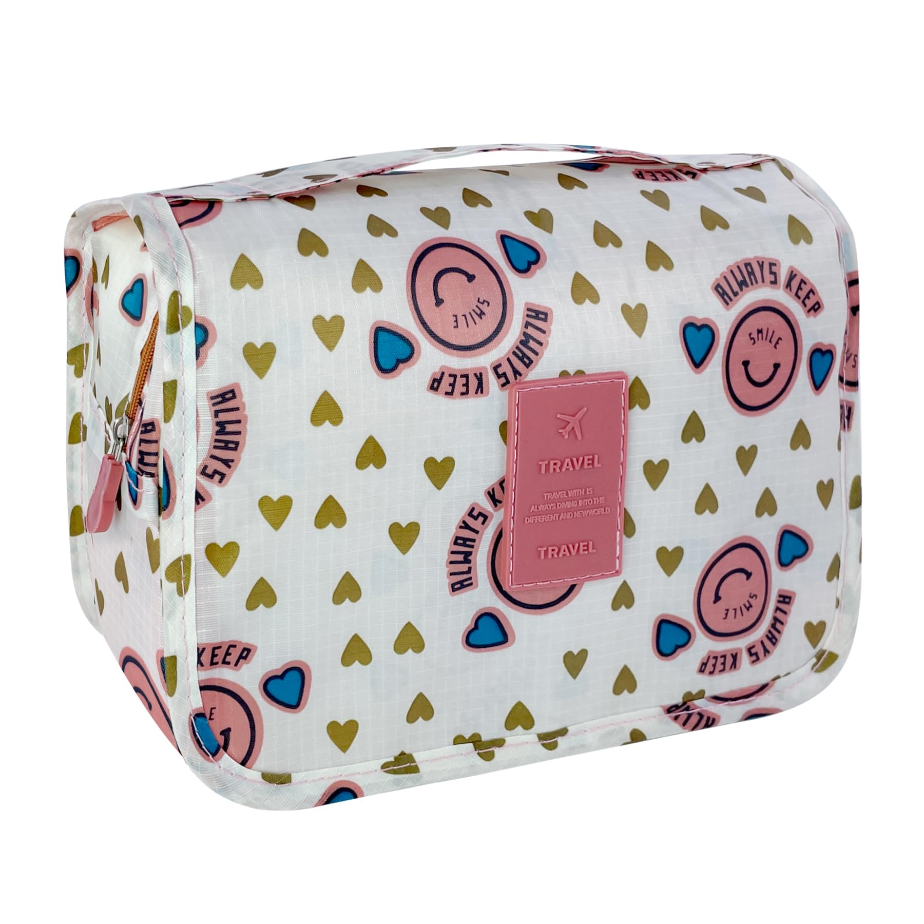 Lcsmaokin Large Capacity Toiletry Bag Travel Bag with Hanging Hook for Men and Women Waterproof Travel Cosmetic Bag Bathroom Storage Bag for Brushes Set,Full-Sized Shampoo,Accessories-Pink Smile