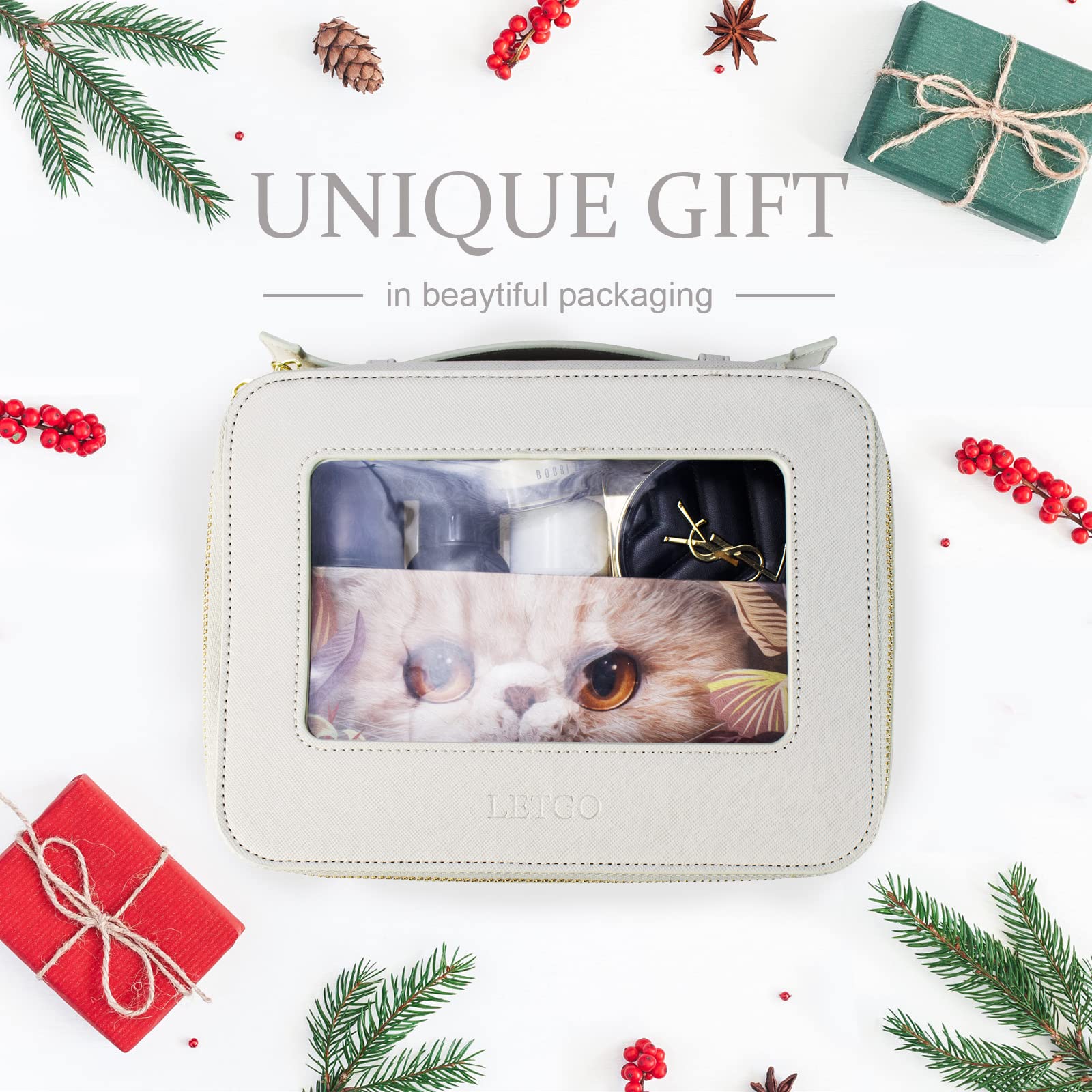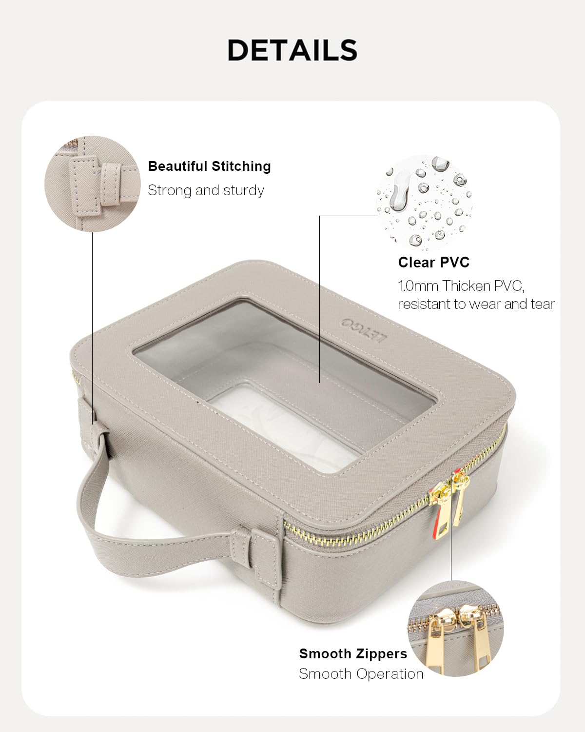 - PREMIUM PU SAFFIANO LEATHER:These travel toiletry bags are made of PU material,durable, and waterproof.Unlike other flimsy and collapsible pvc bags, Together with the beautiful stitches and compact leather zippers, this make up bag is durable for long-lasting use.