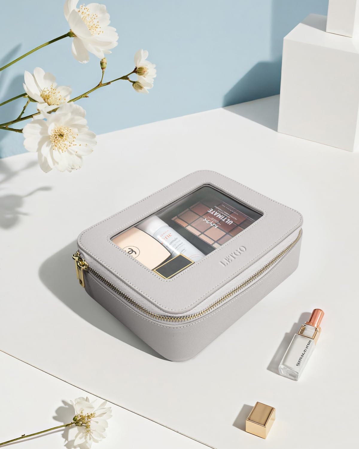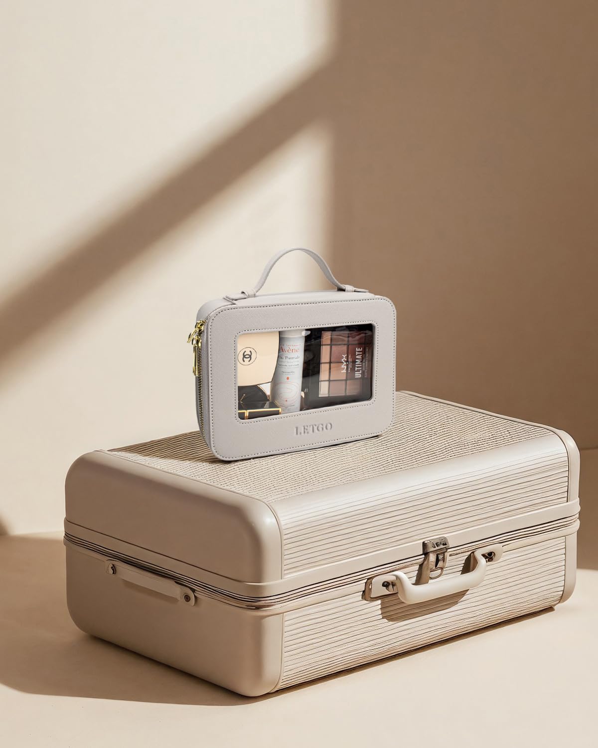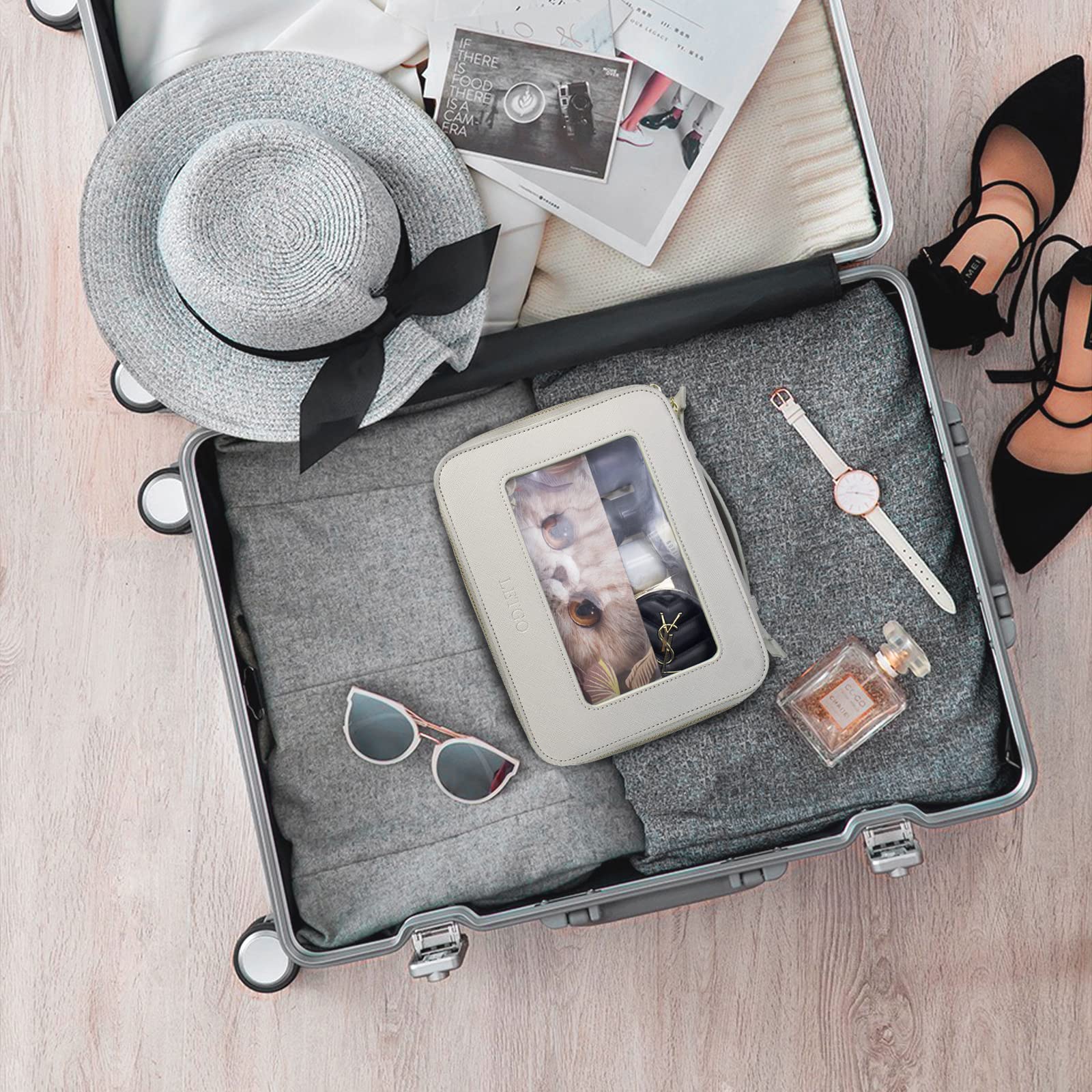 LETGO Clear Makeup Bags, TSA Approved Toiletry Bag with Zipper, Clear Makeup Organizer Fit Carry-on Travel Essentials,Clear Cosmetic Bags for Women Men (A-Grey)