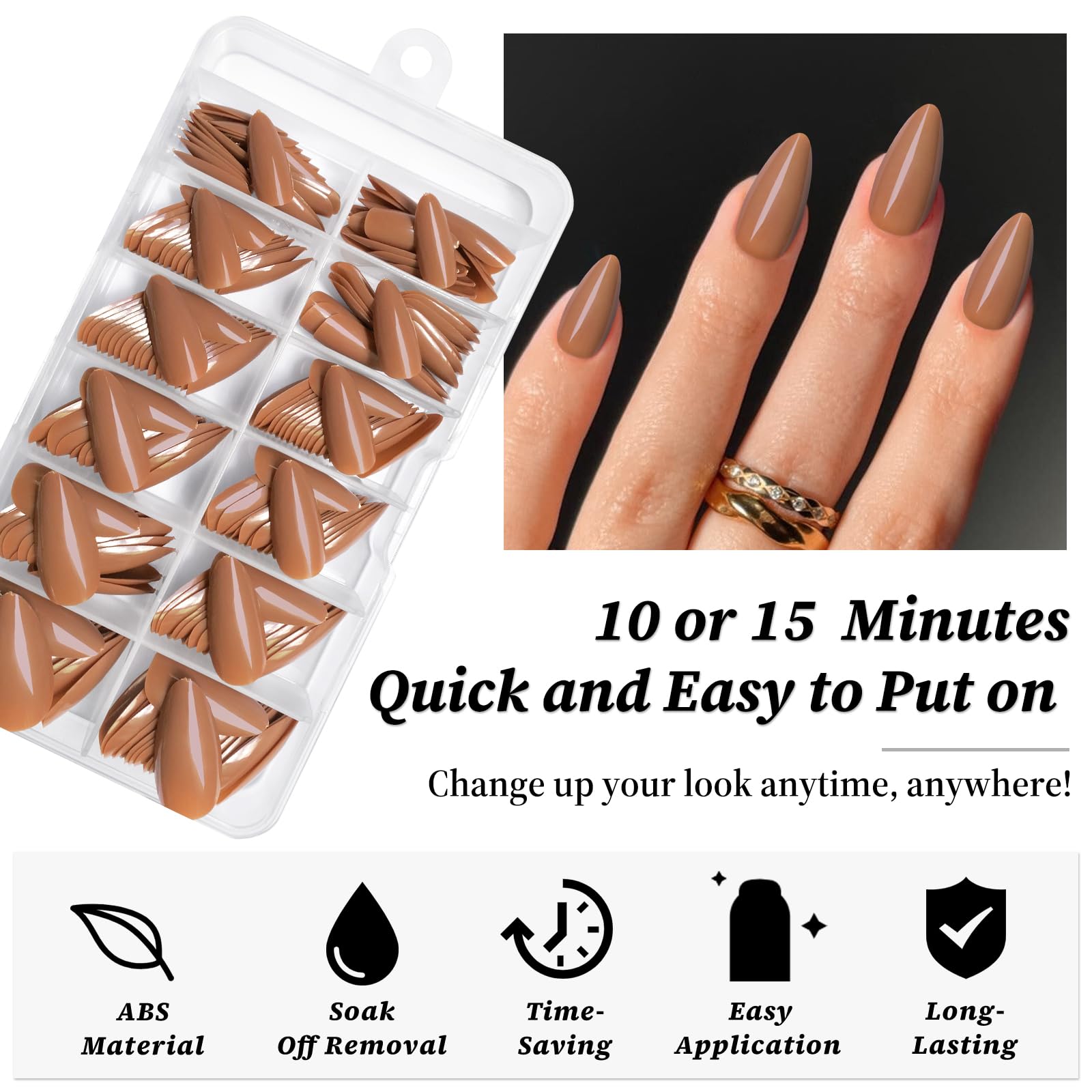 Lifextol 240PC Coffee Almond Press on Nails Medium Fake Nails Press ons, False Acrylic Nails Press on Nails Almond Glue on Nails Artificial Nail Tips Fingernails Stick on Nails with Glue&Adhesive Tabs