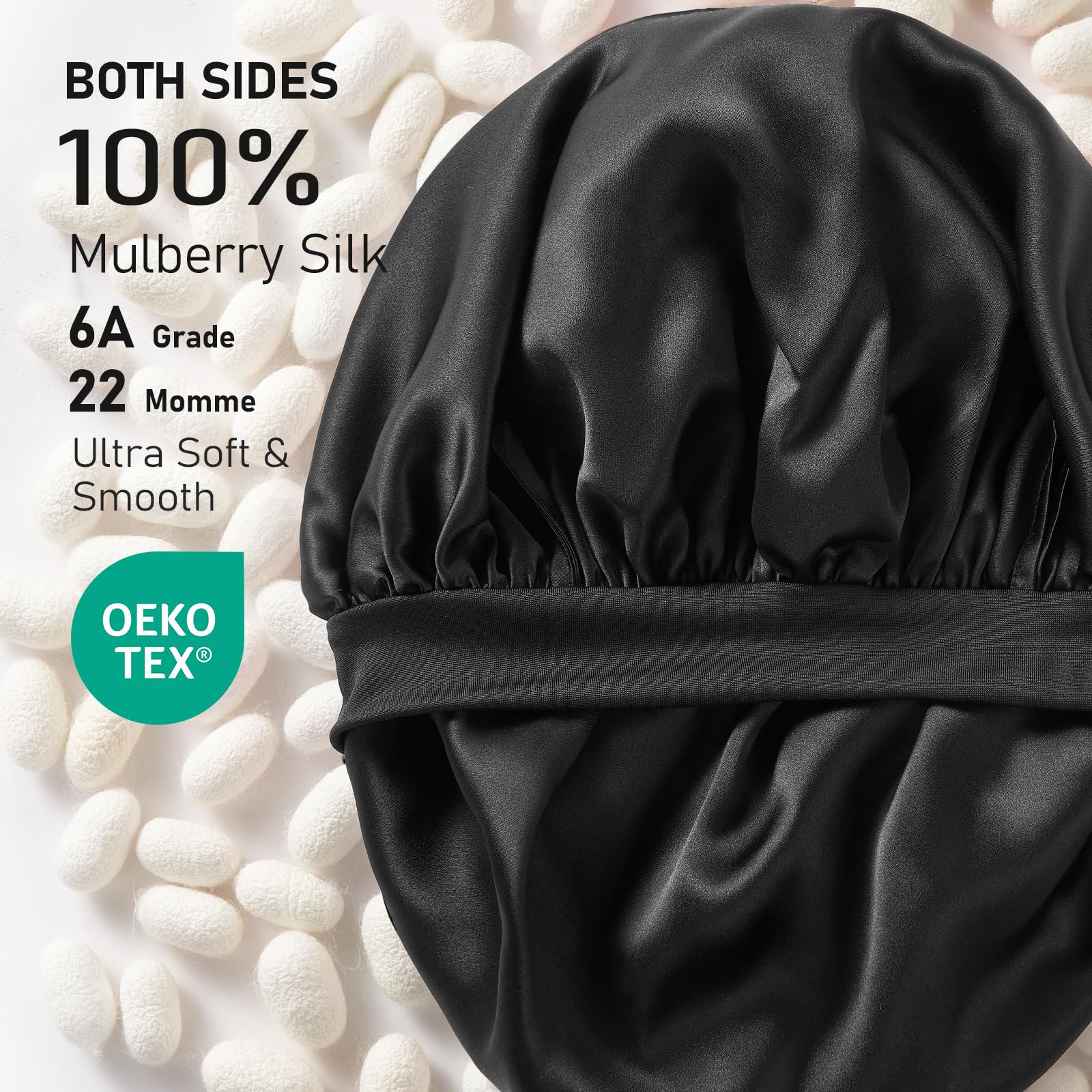 LitBear 100% Mulberry Silk Bonnet for Sleeping Women, 6A 22 Momme, Large Double-Layer Silk Hair Wrap with Tie Band, Non-Slip Silk Turban, Includes Silk Scrunchie