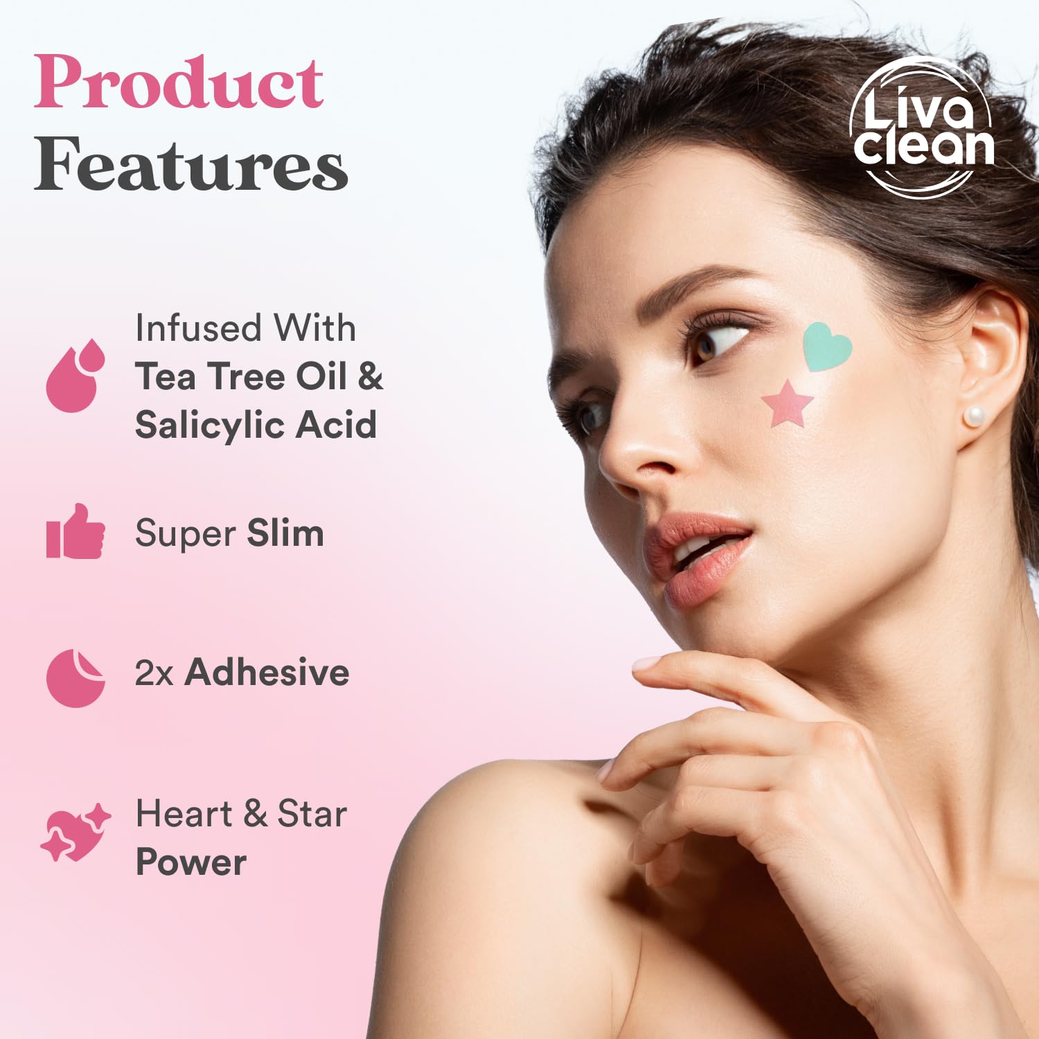 LivaClean 240 CT Heart & Star Pimple Patch w/Salicylic Acid & Tea Tree Oil, Pimples Patches, Pimple Patches Heart, Hydrocolloid Cute, Zit Patch, Cute Acne