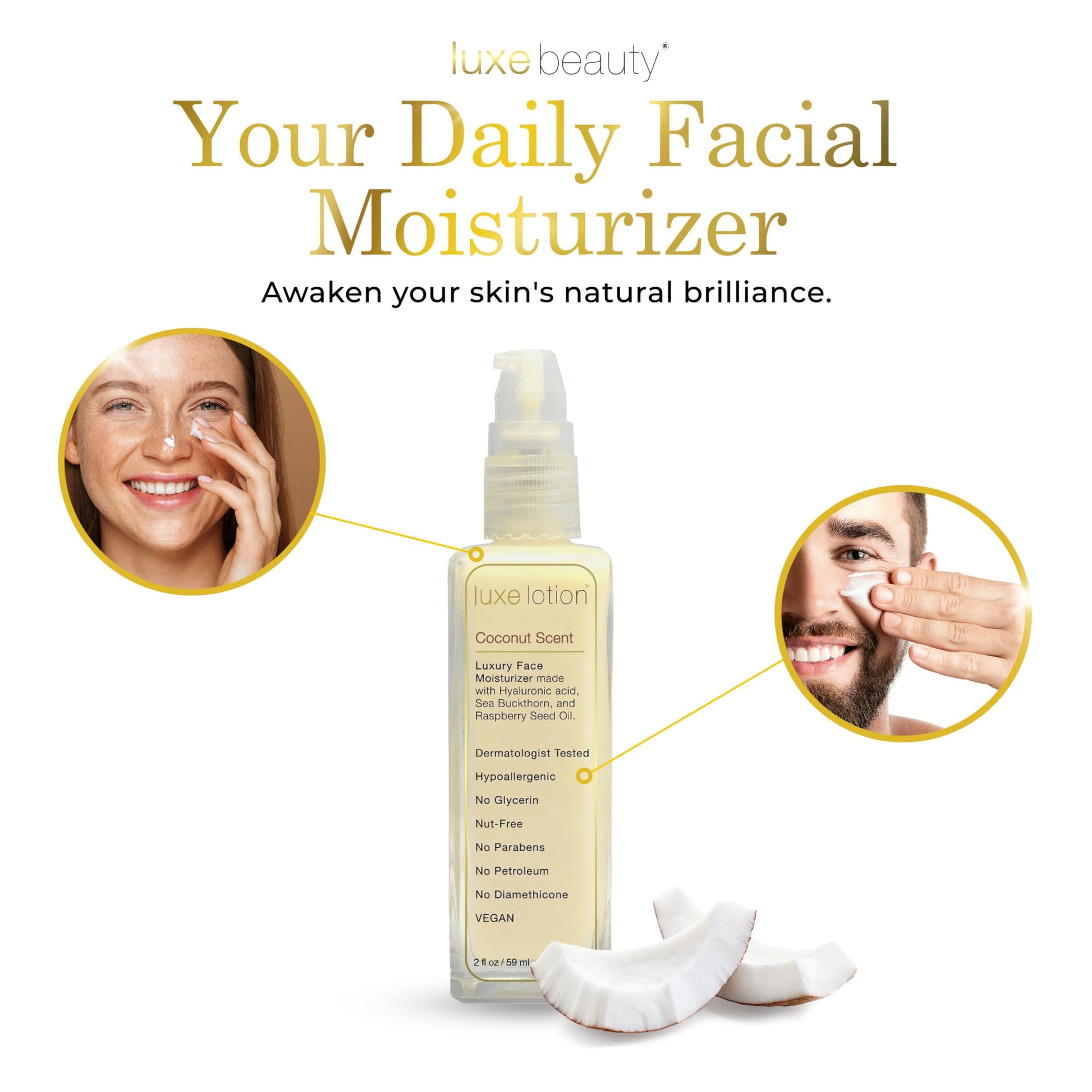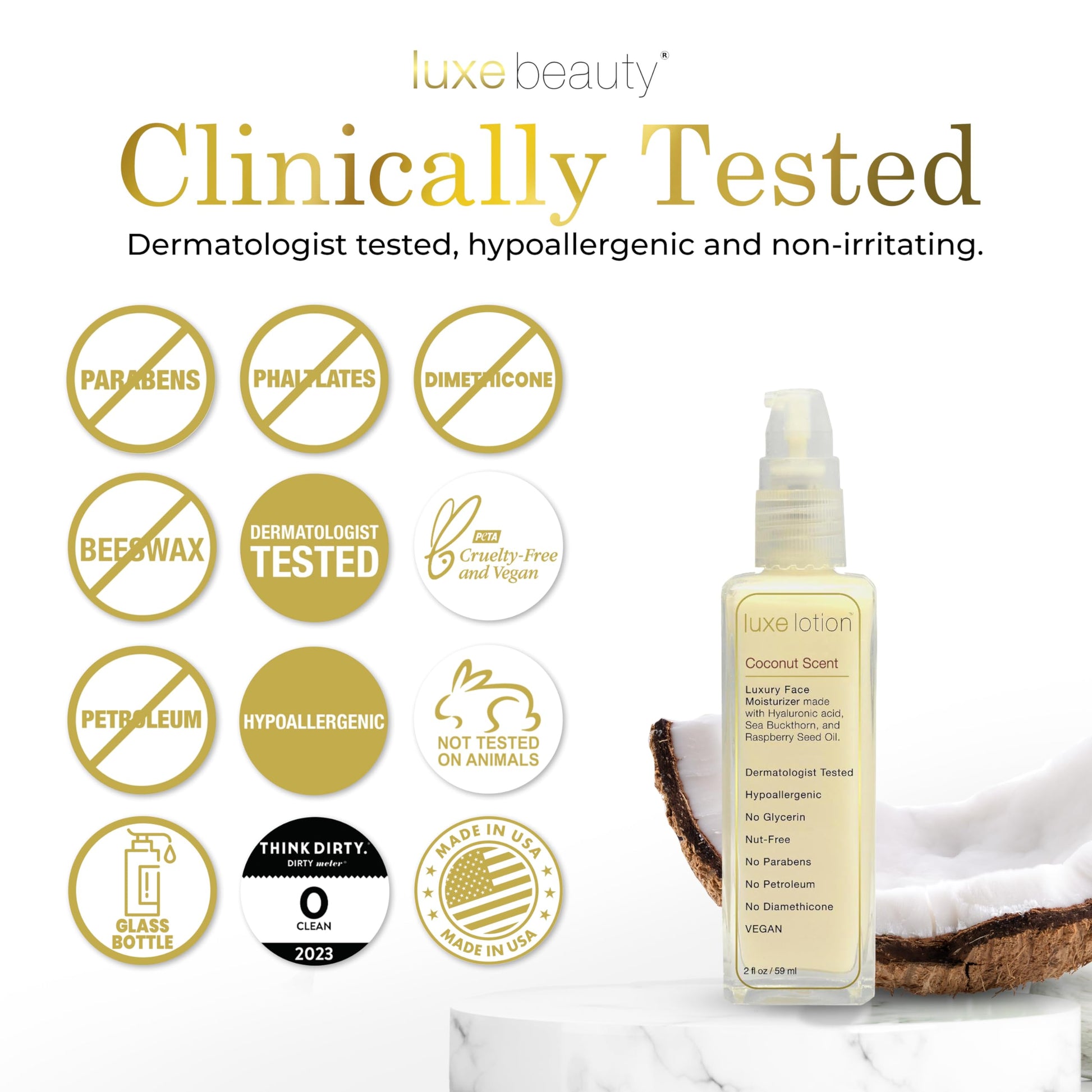 Luxe Beauty Non-Greasy Hyaluronic Acid Moisturizer – Coconut-Scented Lotion, Silicone-Free, No Fillers – With Organic and Plant-Based Ingredients - Anti-Aging Hydrating Facial Cream – Travel Size 2oz