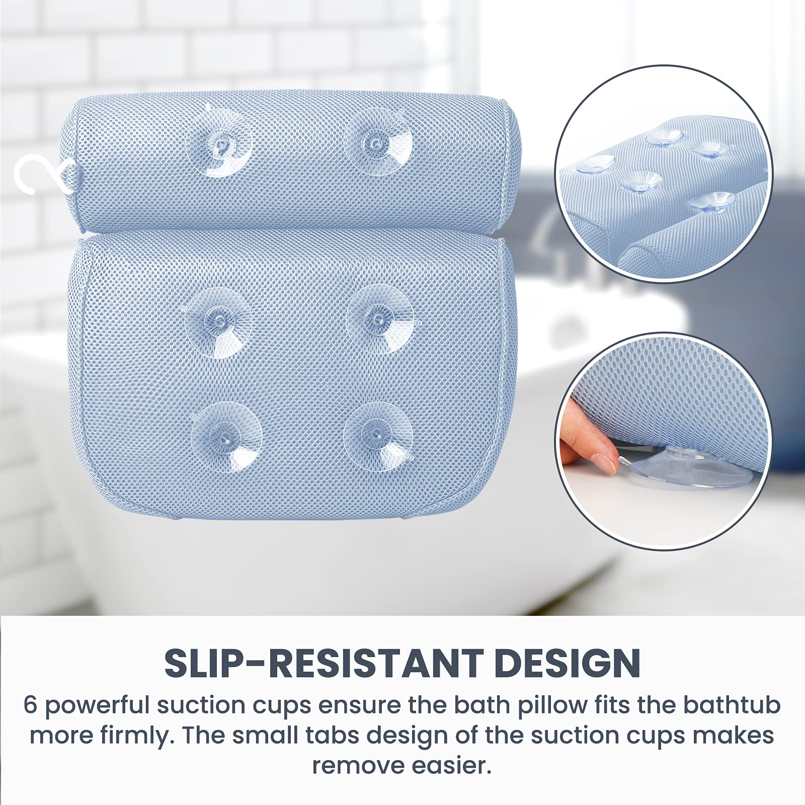 LuxStep Bath Pillow Bathtub Pillow with 6 Non-Slip Suction Cups,14.6x12.6 Inch, Extra Thick and Soft Air Mesh Pillow for Bath - Fits All Bathtub, Blue