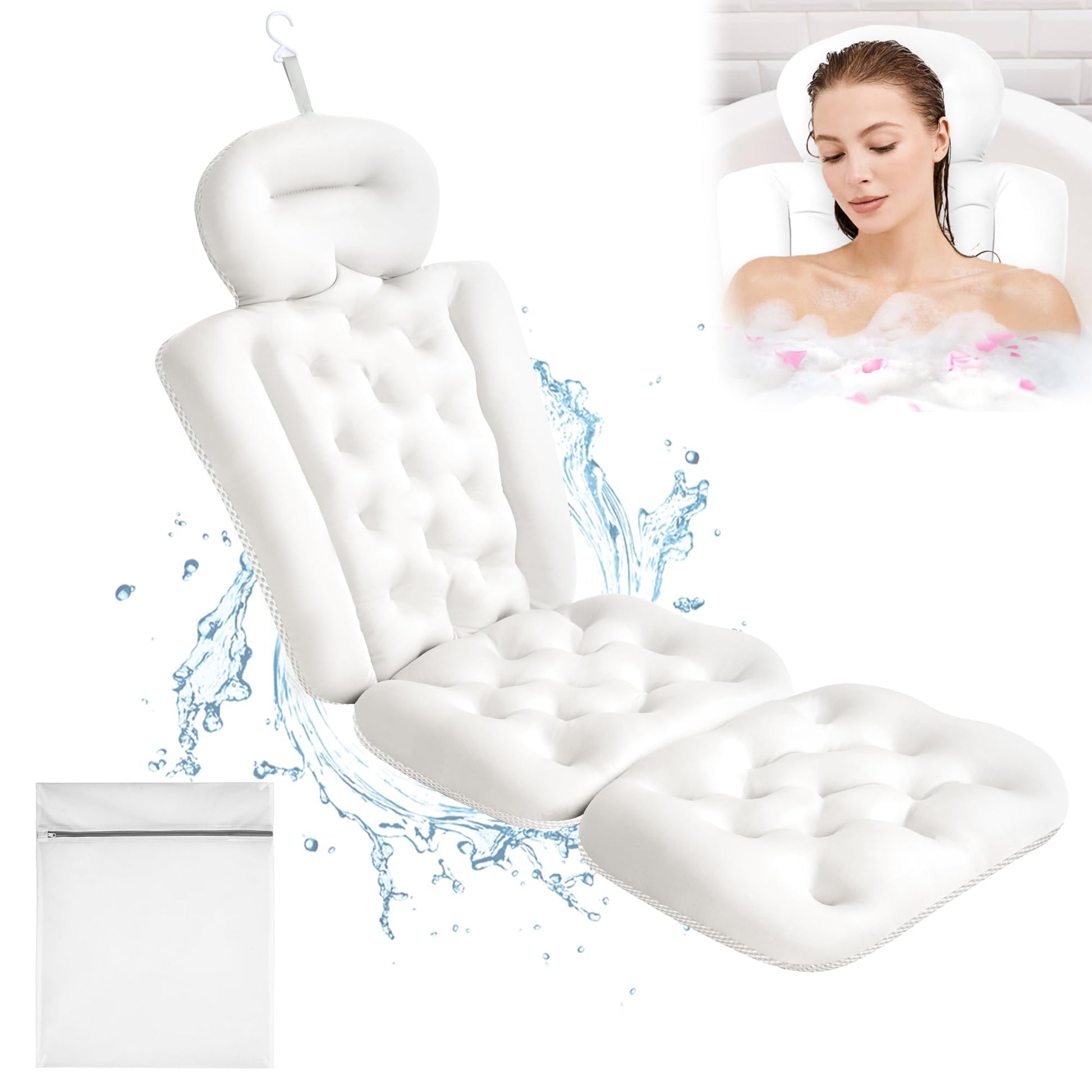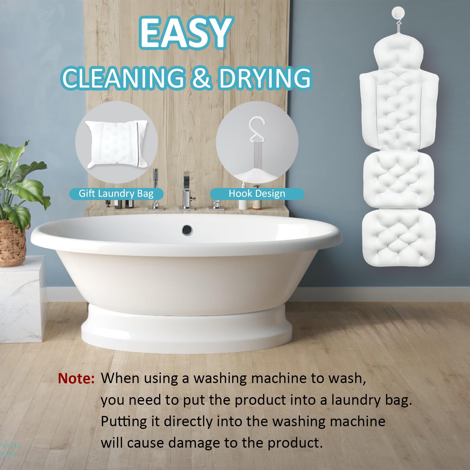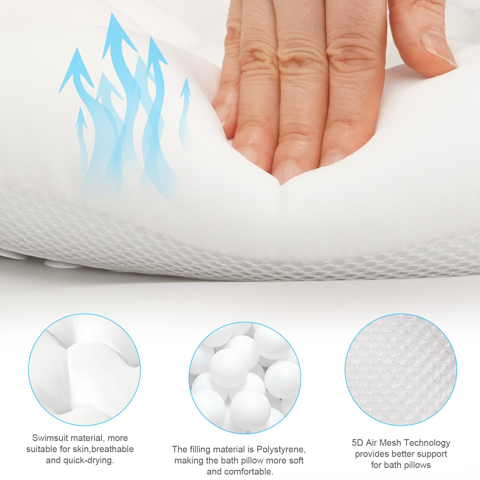 - 【Upgraded Non-Slip suction cups】Tired of the Suction Cups that are constantly slides and even floats around while you are bathing? Our bath pillow equipped with powerful suction cups on the underside, which can firmly fix the bath pillow in place on any smooth surfaces with great ease (not suitable for textured surfaces!). Before using this bathtub pillow, wet each suction cup. Then firmly press the pillow corresponding to EACH (IMPORTANT) suction cup to the front of the bathtub.