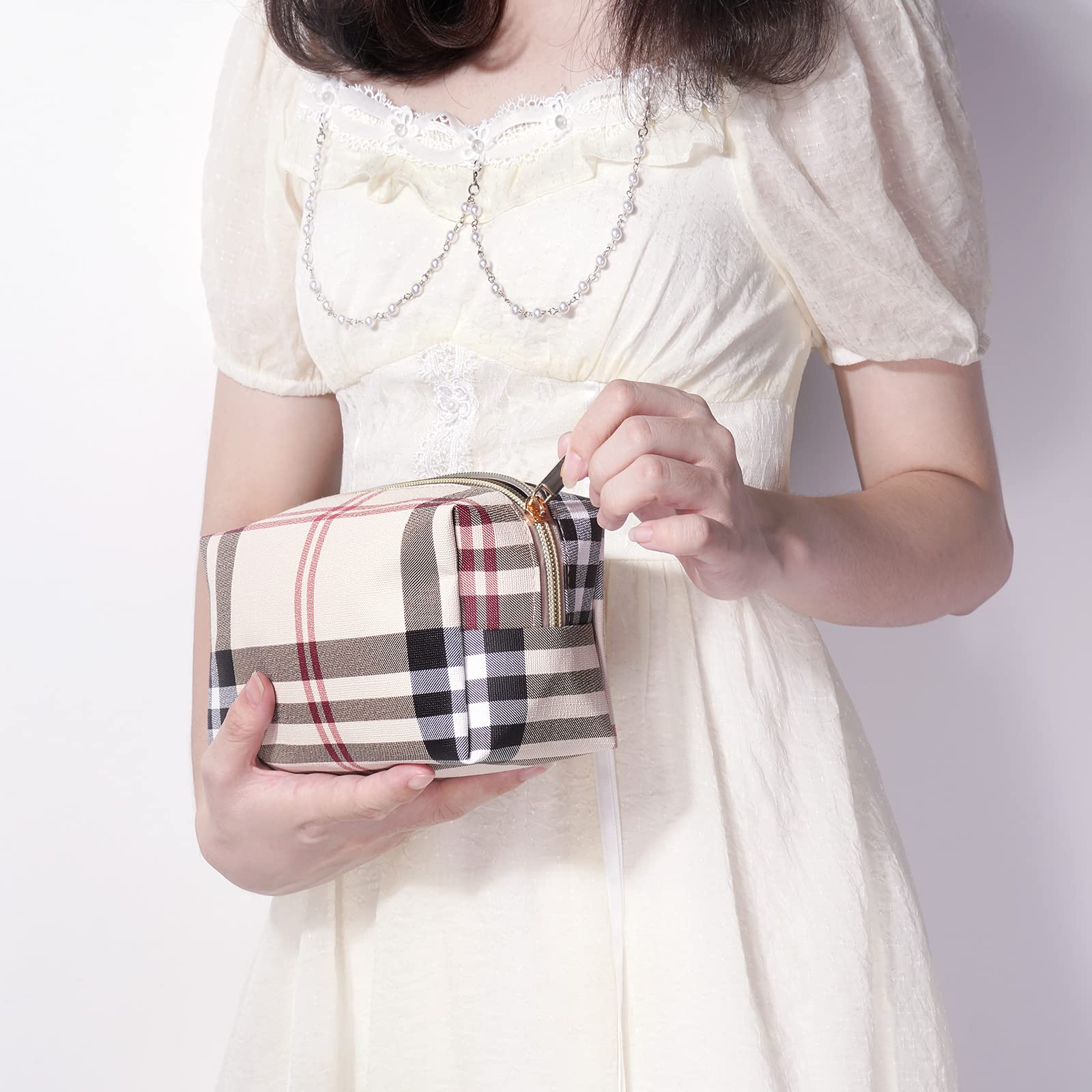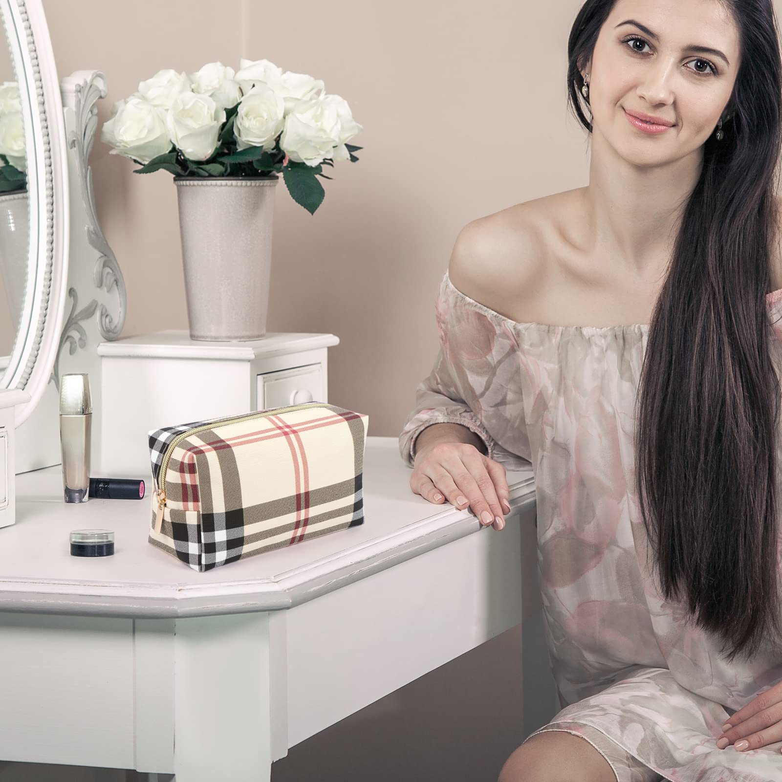 - 【HIGH QUALITY】- MAANGE makeup bag is made of soft PU leather, easy to clean. The waterproof cosmetic bag keeps the stuffs from getting wet or falling out. Cute plaid pattern for every occasion.