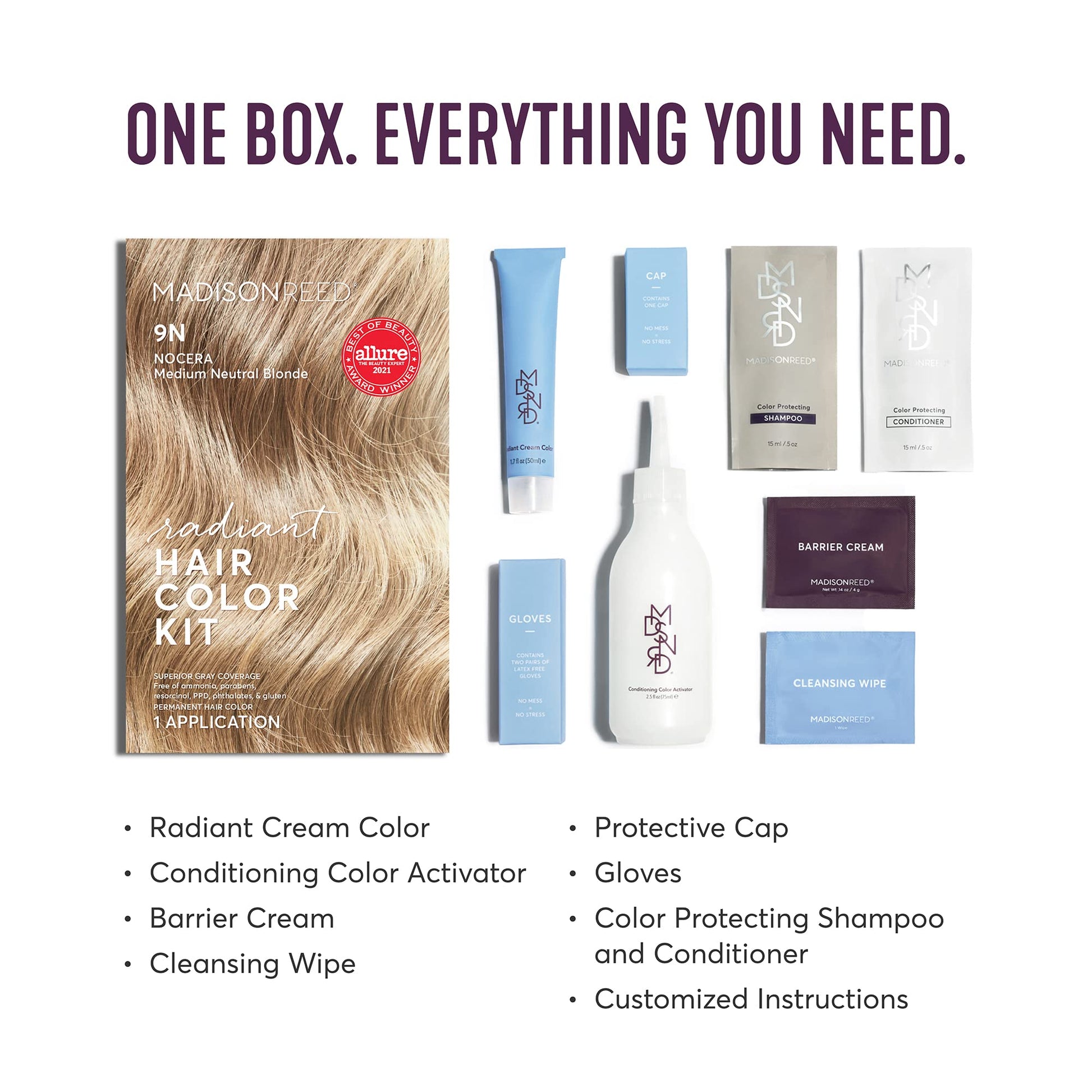 Madison Reed Radiant Hair Color Kit, Medium Neutral Blonde for Superior Gray Coverage, Ammonia-Free, 9N Nocera Blonde, Permanent Hair Dye, Pack of 1