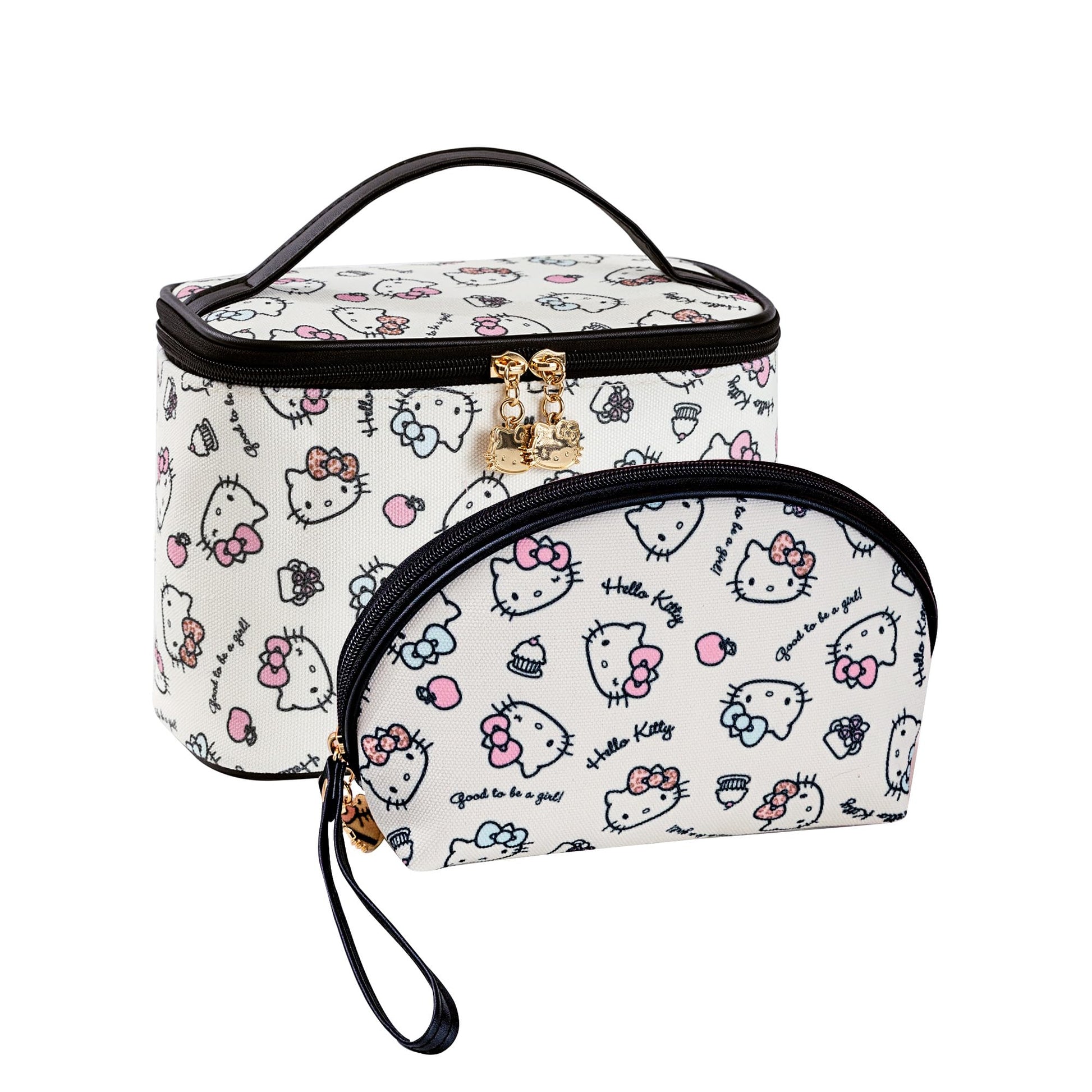Makeup Bag 2PCS with Large Handle Travel Cube Cosmetic Bags Brush Holder Cute Organizer Suitable for Purse for Women (02 Sweet Apple 2PCS)
