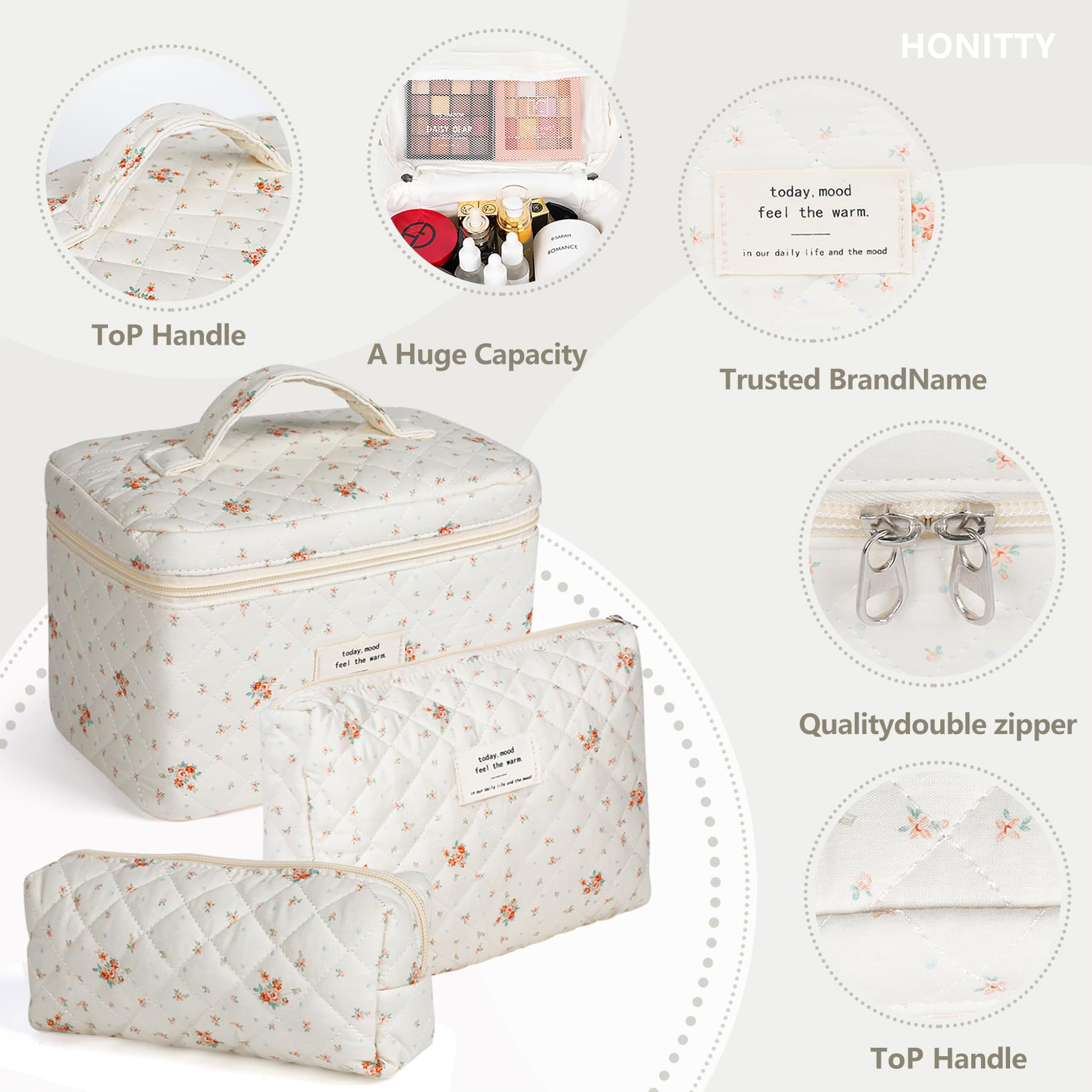 Makeup Bag,Quilted Cosmetic Bags,Large Floral Make Up Organize bag,Makeup Bag Set for Women,Flower Travel Toiletry Bag