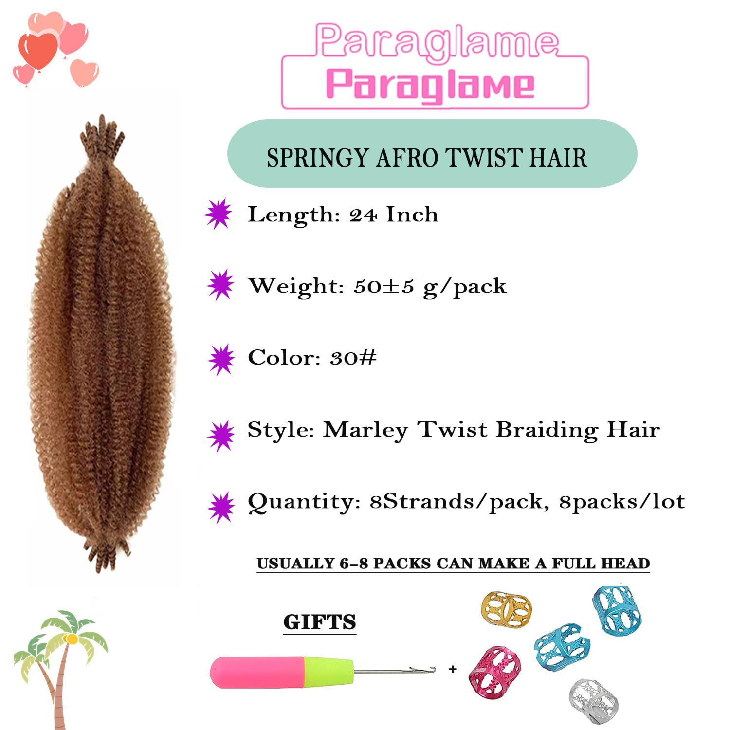 - 2.【Kinky Braiding Hair Extension】 : Marley hair length: 16inch/24inch/30inch//36inch, 8pcs/lot. Color: 1B, 1B/30, 350#, pink, 1B/27, 27#, 30#, 27/613, Tbug, Tgrey, 4#, T350.