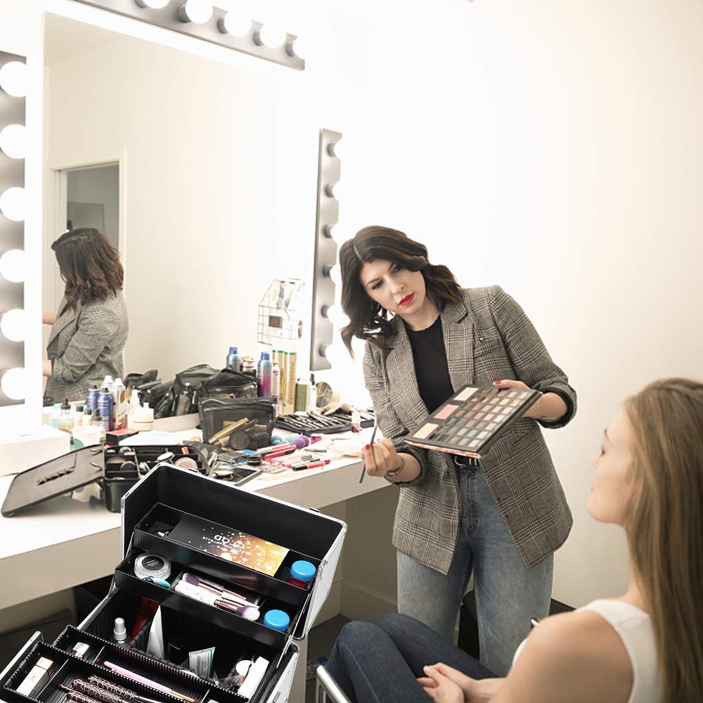 - CONVENIENT MOVING: With its 4 wheels that can roll 360 degrees, this makeup case is easy to transport to any location. Whether you're at the airport, on a country road, or going up stairs, it can handle all types of terrain. Moreover, the wheels are designed to be extremely quiet, so you don't have to worry about disturbing others while moving it.