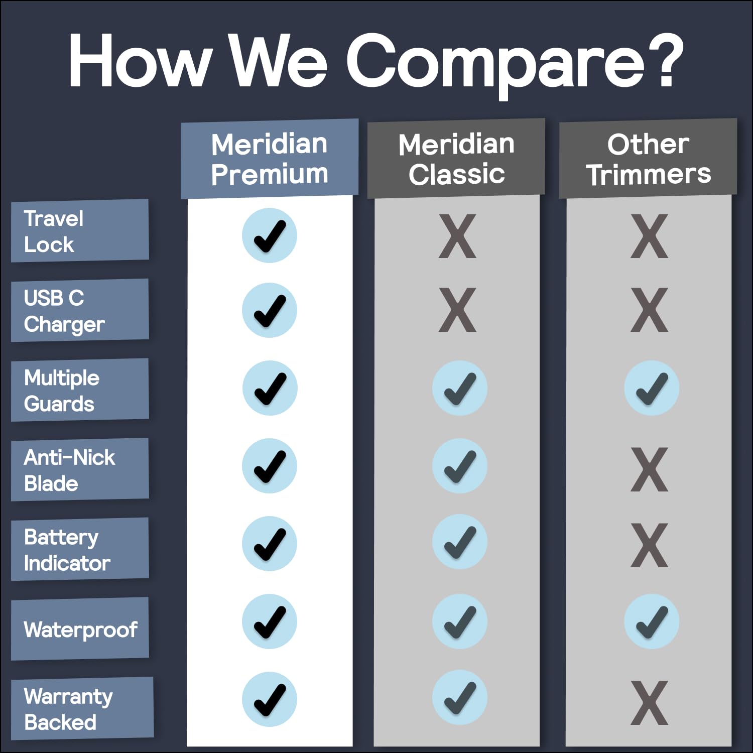 - MANUFACTURER WARRANTYWith Meridian's manufacturer warranty, you can trust that our products are built to last. Groom with confidence using our men's trimmer for manscaping! Packaging May Vary