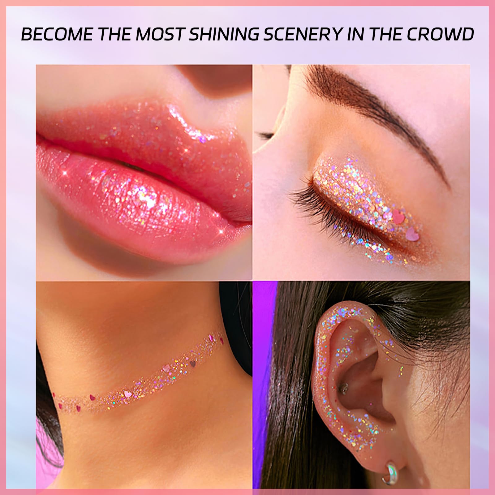 - This holographic body glitter gel is specially designed for festivals, clubs, parties, carnival parties, costumes, concerts, or cosplay shows. Large numbers of holographic sequins, and the color, and shine of the laser sequins vary with the perspective, making it easy for you to attract everyone's attention.