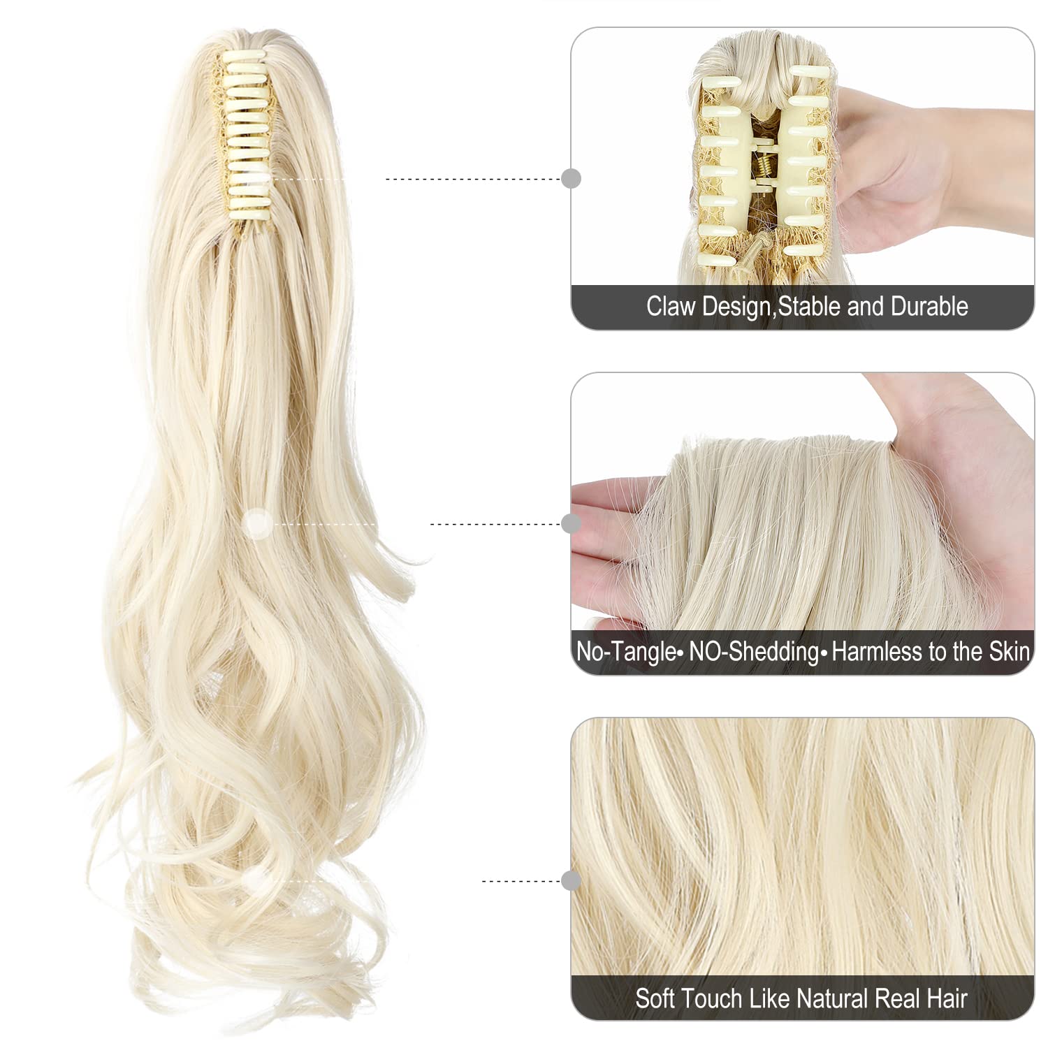 Mitrygreen Claw Clip Ponytail Extension 18" Clip in Wavy Ponytail Hair Extensions Long Pony Tails for Women Extensions Platinum Blonde Wave Hairpiece