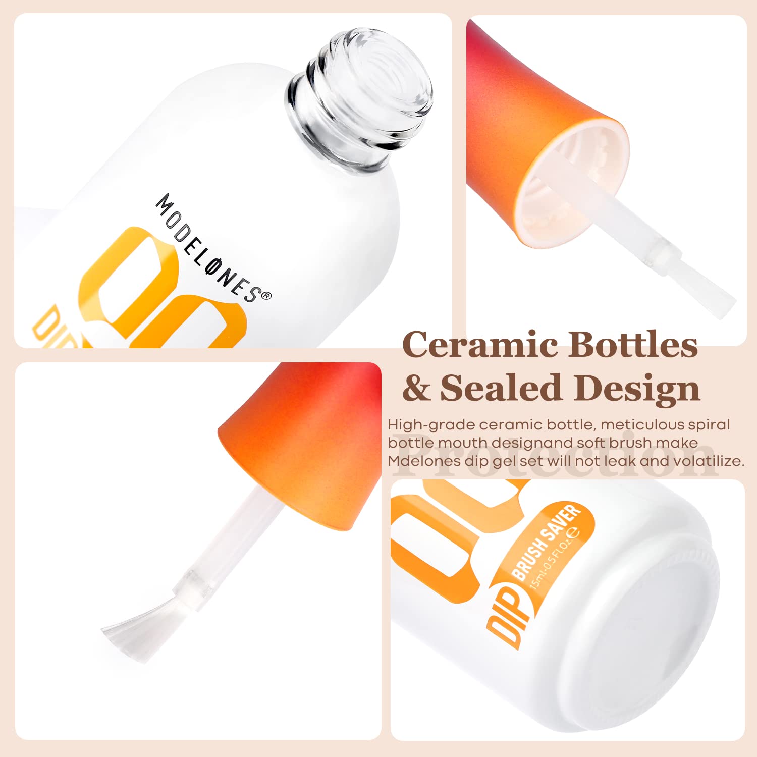 - DIP POWDER LIQUID SET: Includes Base Coat, Top Coat, Activator, and Brush Saver (15ml/0.5 Fl Oz). These dip powder liquids work seamlessly with dip powder colors to give you a hardened and long-lasting manicure. Unlike traditional gel manicures, dip powder manicures don't require UV light for curing. This eliminates the potential skin damage caused by repeated UV light exposure that gel manicures entail. (This set is for dip powder only and cannot be used on nail gel.)