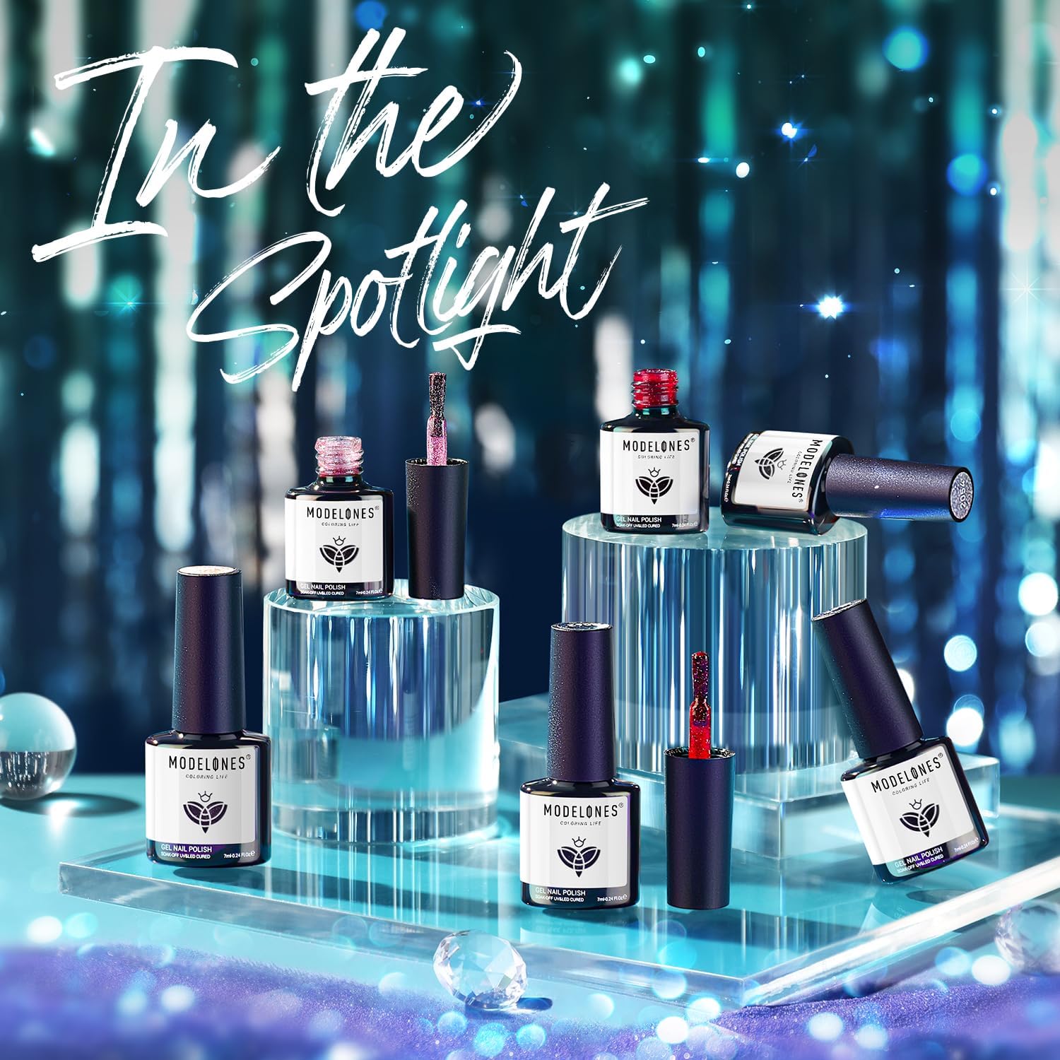 - USER-FRIENDLY: Modelones Sparkle nail polish is made of natural resin, non-toxic formula. The sparkle gel nail polish is low odor, rich color, middle consistency, self-evenly, no shrink and edge, and this glitter gel polish will be a perfect choice for nail art lovers to enjoy DIY manicure.