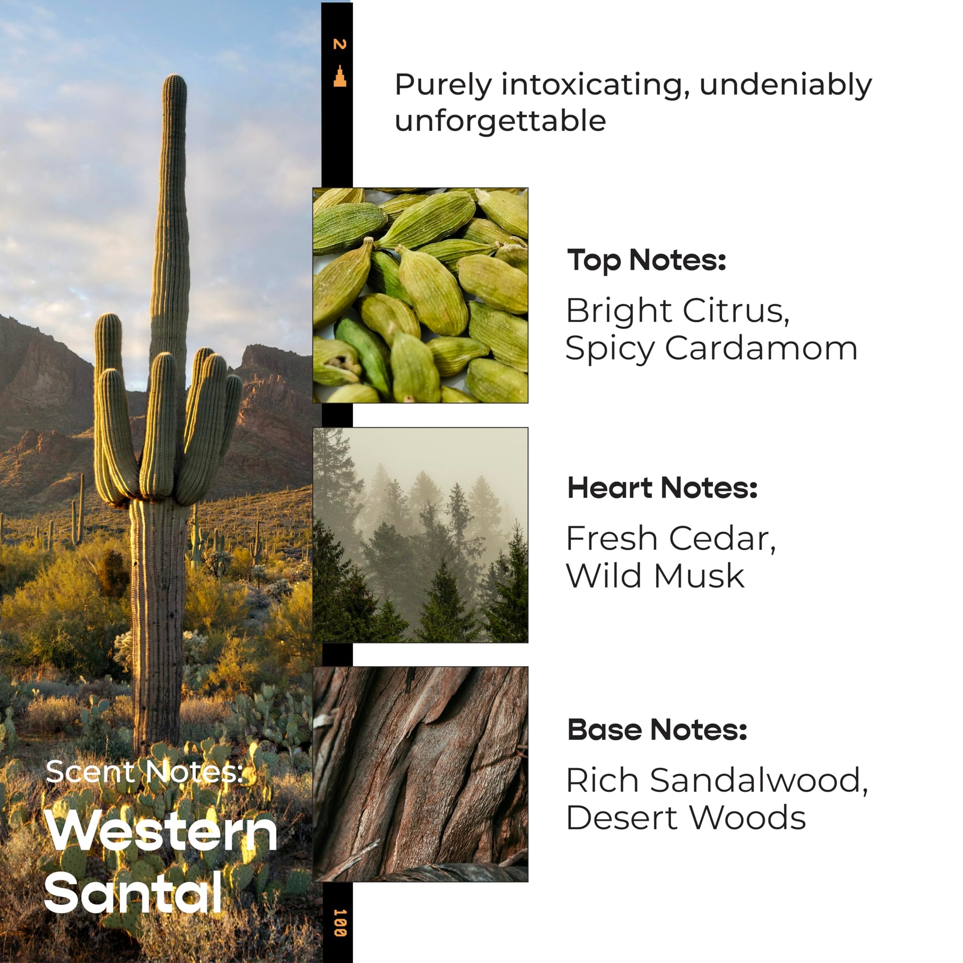 - Western Santal is a fresh and intoxicating fragrance with notes of citrus, cardamom, cedar, musk and sandalwood