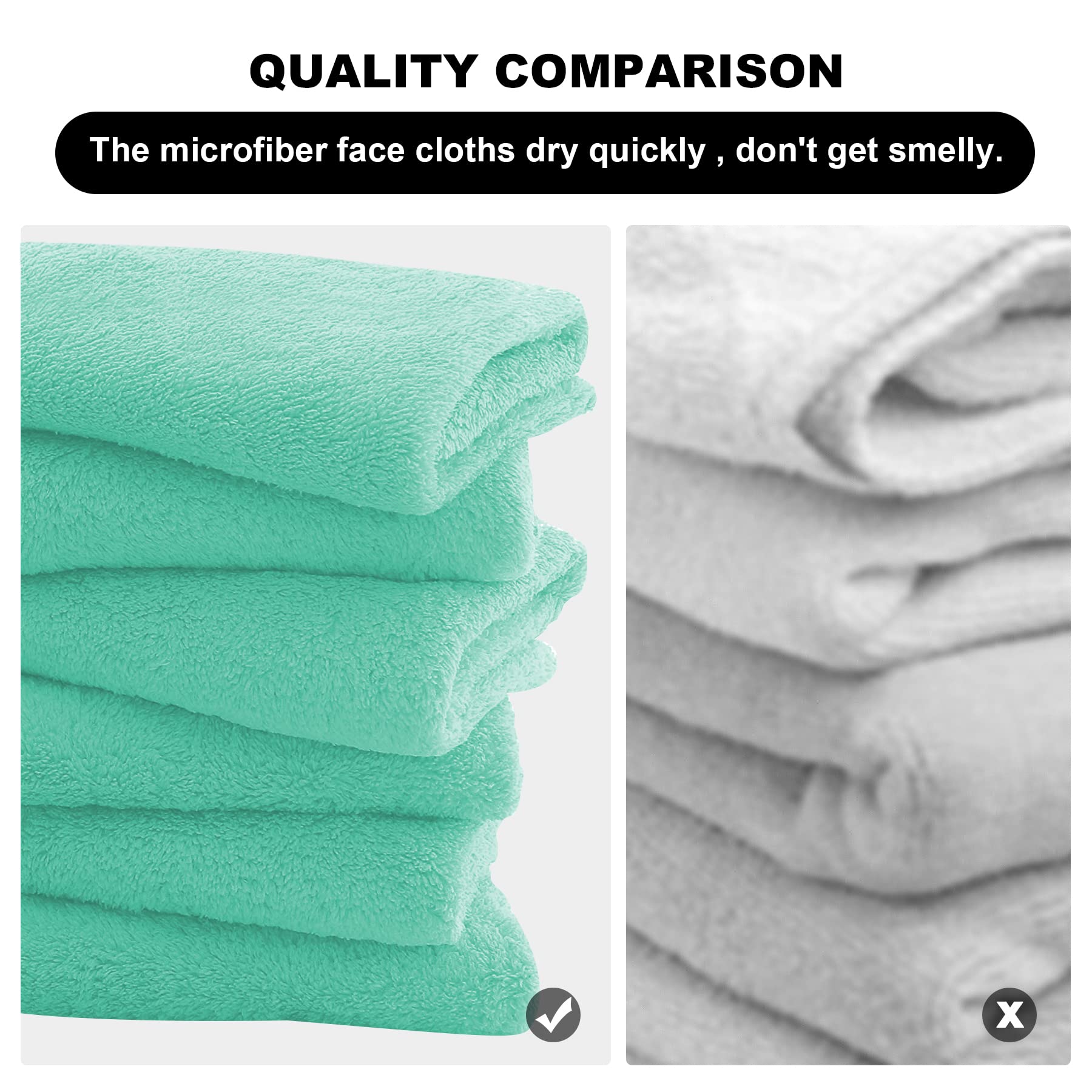 MOONQUEEN Microfiber Facial Cloths Fast Drying Washcloth 12 Pack - Premium Soft Makeup Remover Cloths - Aqua Green