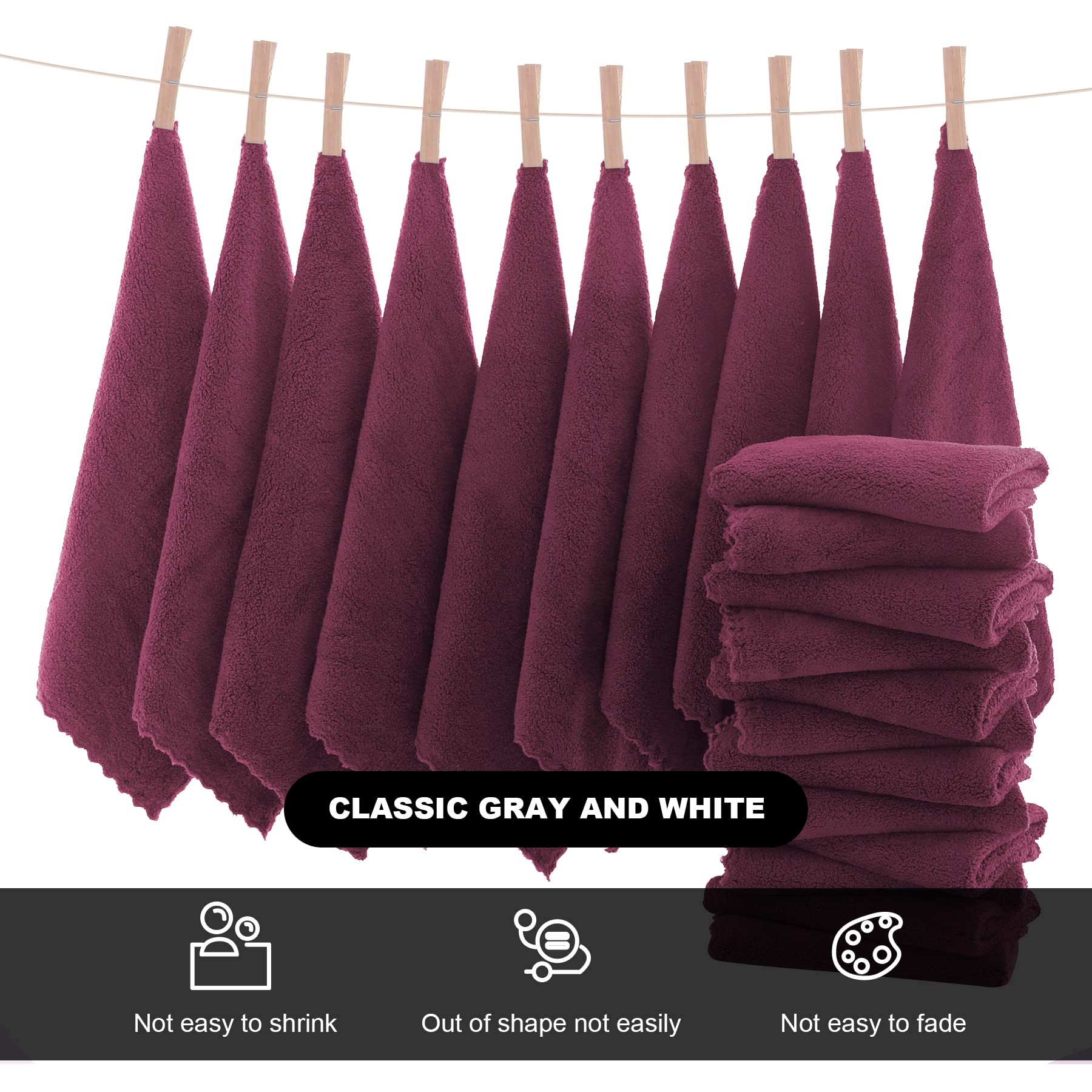 MOONQUEEN Microfiber Facial Cloths Fast Drying Washcloth 12 Pack - Premium Soft Makeup Remover Cloths - Burgundy
