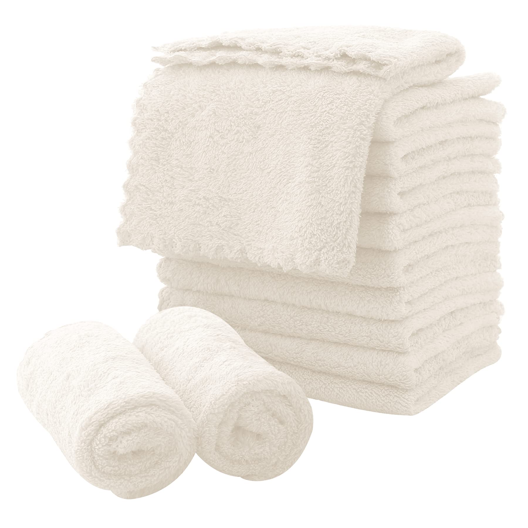 MOONQUEEN Microfiber Facial Cloths Fast Drying Washcloth 12 Pack - Premium Soft Makeup Remover Cloths - Cream