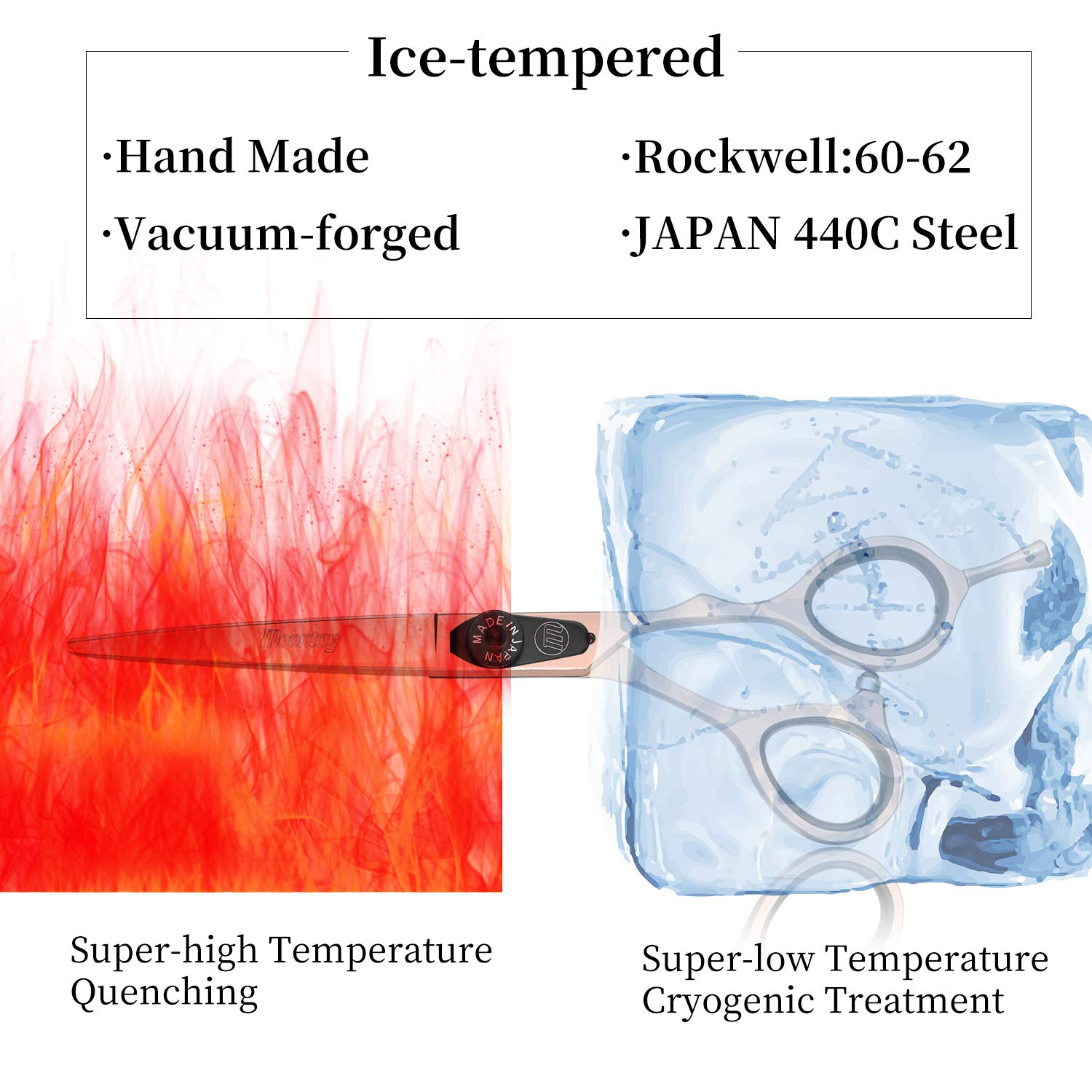 - PREMIUM HAIRDRESSER SCISSORS - These specialized high-end 440C Japanese stainless steel hair cutting thinning scissors are tempered with precise blades and hand-sharpened edges to evenly trim hair with ease and texturize hair for stylish looks. These professional hair cutting and thinning scissors are designed to turn your professional or home hair trimming and thinning into a faster, easier, most enjoyable task. You won't ever need another hair cutting shear or hair thinning scissor again!