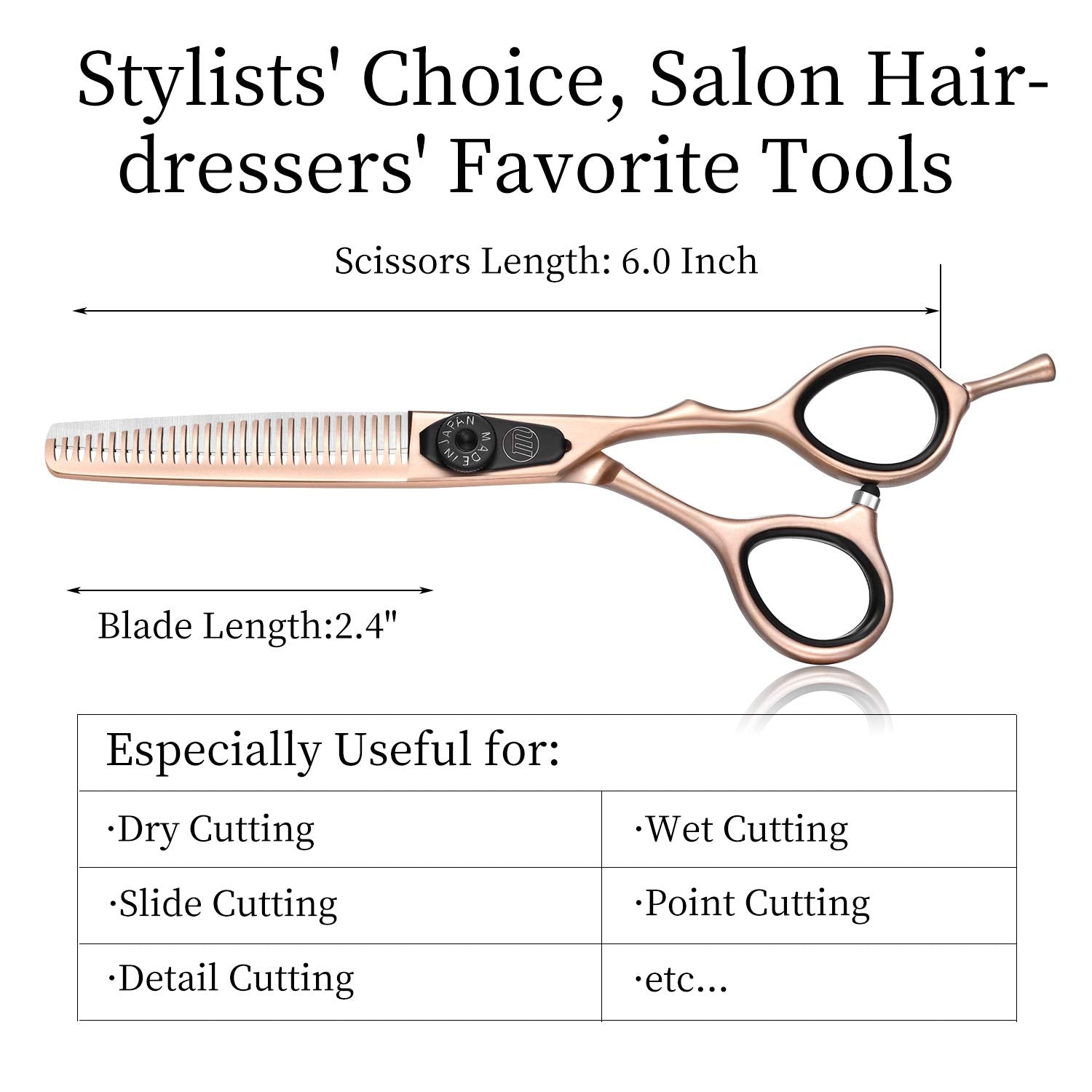 - WHAT'S INCLUDED IN PACKAGE - The hairdressing scissors set includes 1 x 6.0 inches thinning/texturizing shear, 1 x 6.0 inches hair cutting scissor, 1 x cleaning cloth in a leather case, multiple hair cutting tools cater to all your hair cuttings needs. CURRENTLY, THIS PRODUCT COMES WITH A HUGE DISCOUNTED!