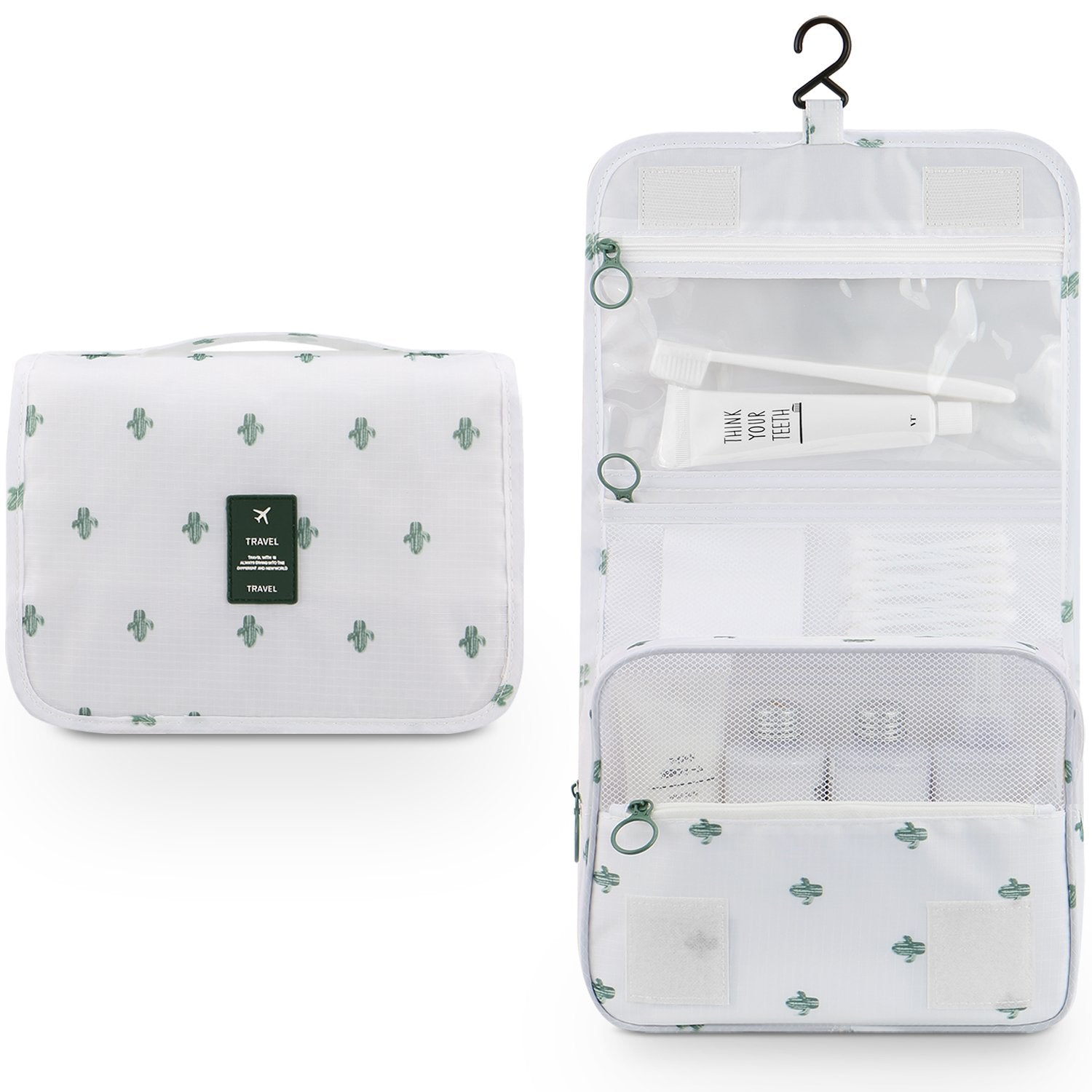 Mossio Hanging Toiletry Bag - Large Cosmetic Makeup Travel Organizer for Men & Women with Sturdy Hook (White Cactus)