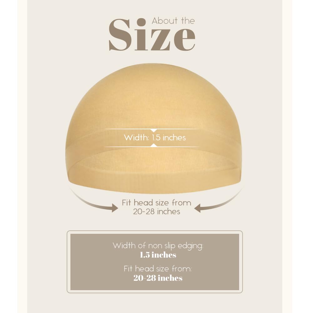 - With the wide and stretchy elastic band on the nylon wig cap, the circumference of wig caps can be adjusted from 20-28 inches to fit most head sizes. Giving the new wig cap a little stretch before using would make your head feel more comfortable.
