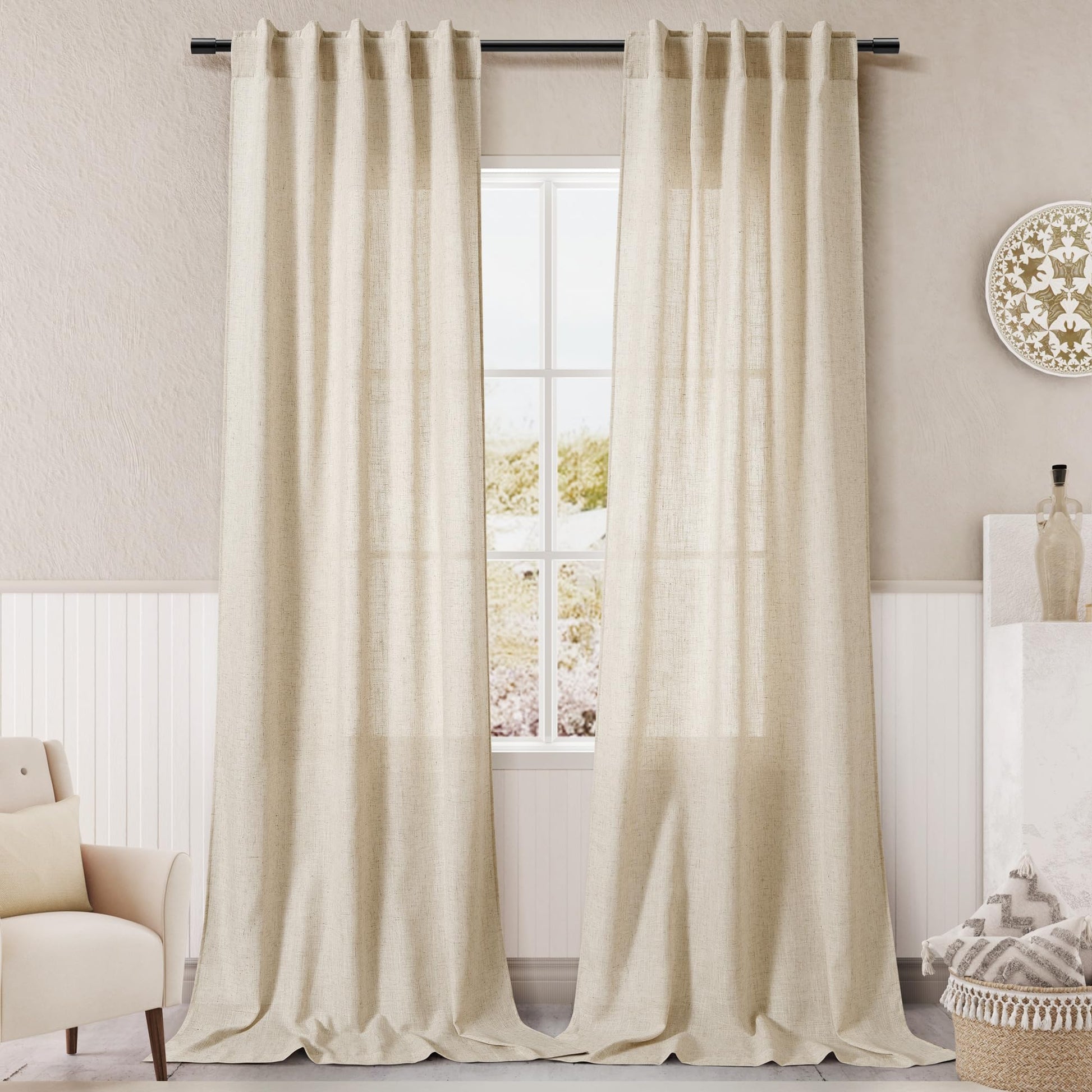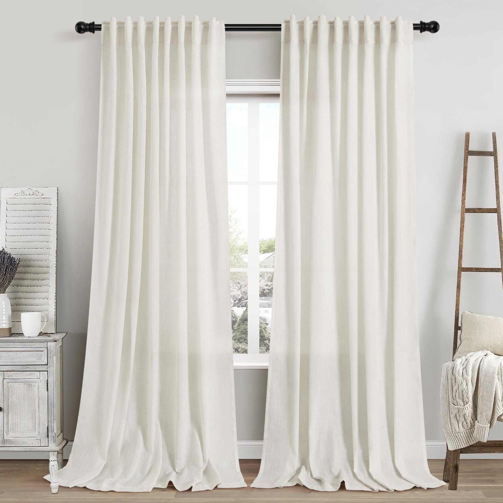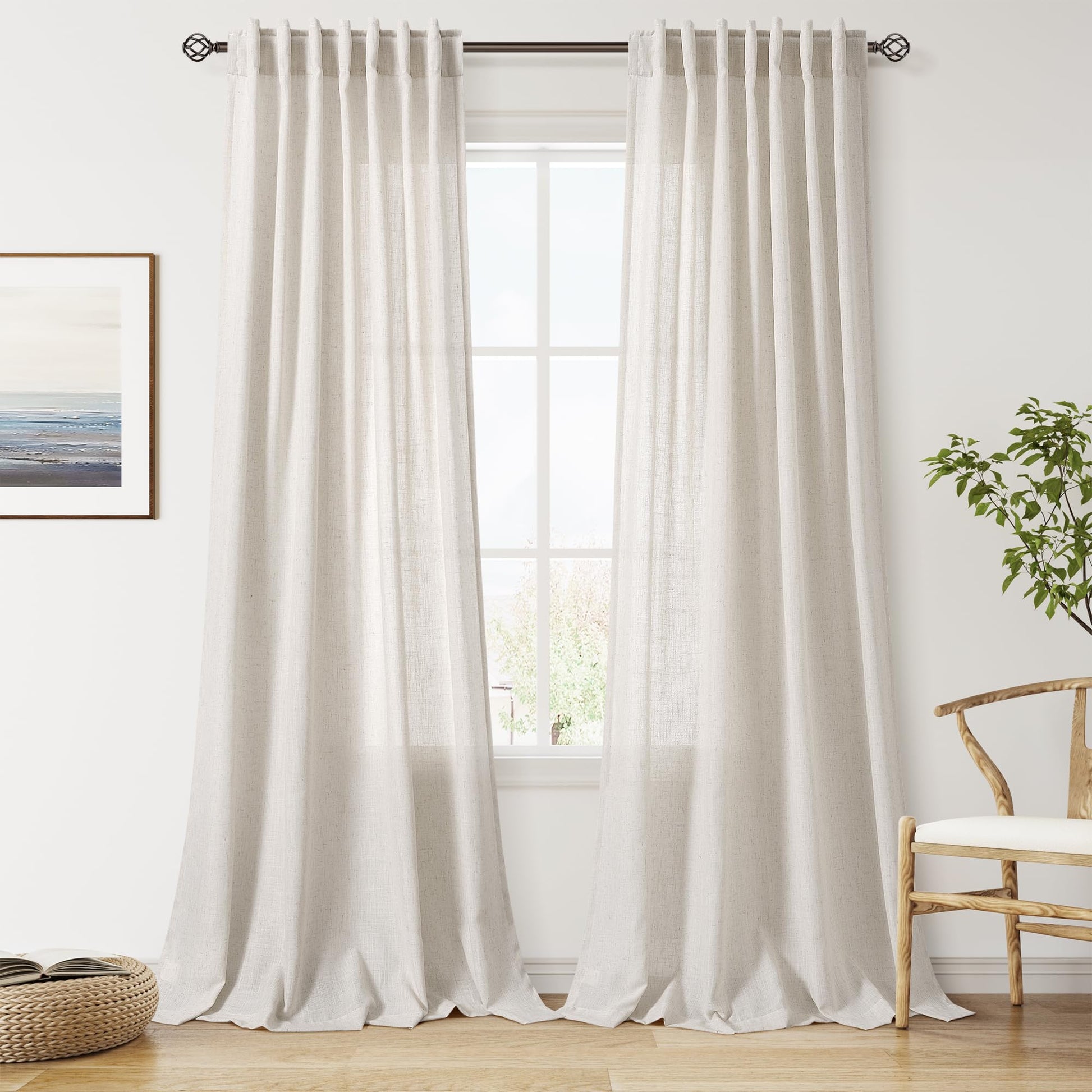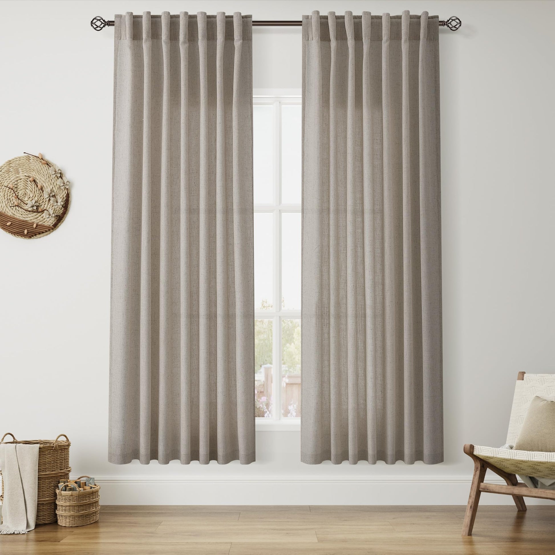 LINEN BLEND FABRIC: Crafted from rich flax linen fabric blended with polyester featuring a neutral linen shade, those panels are more textured than normal sheers and showcase an casual and natural look. Soft touch feeling on these elegant linen blend draperies add an rustic classic and refreshing charm to your window