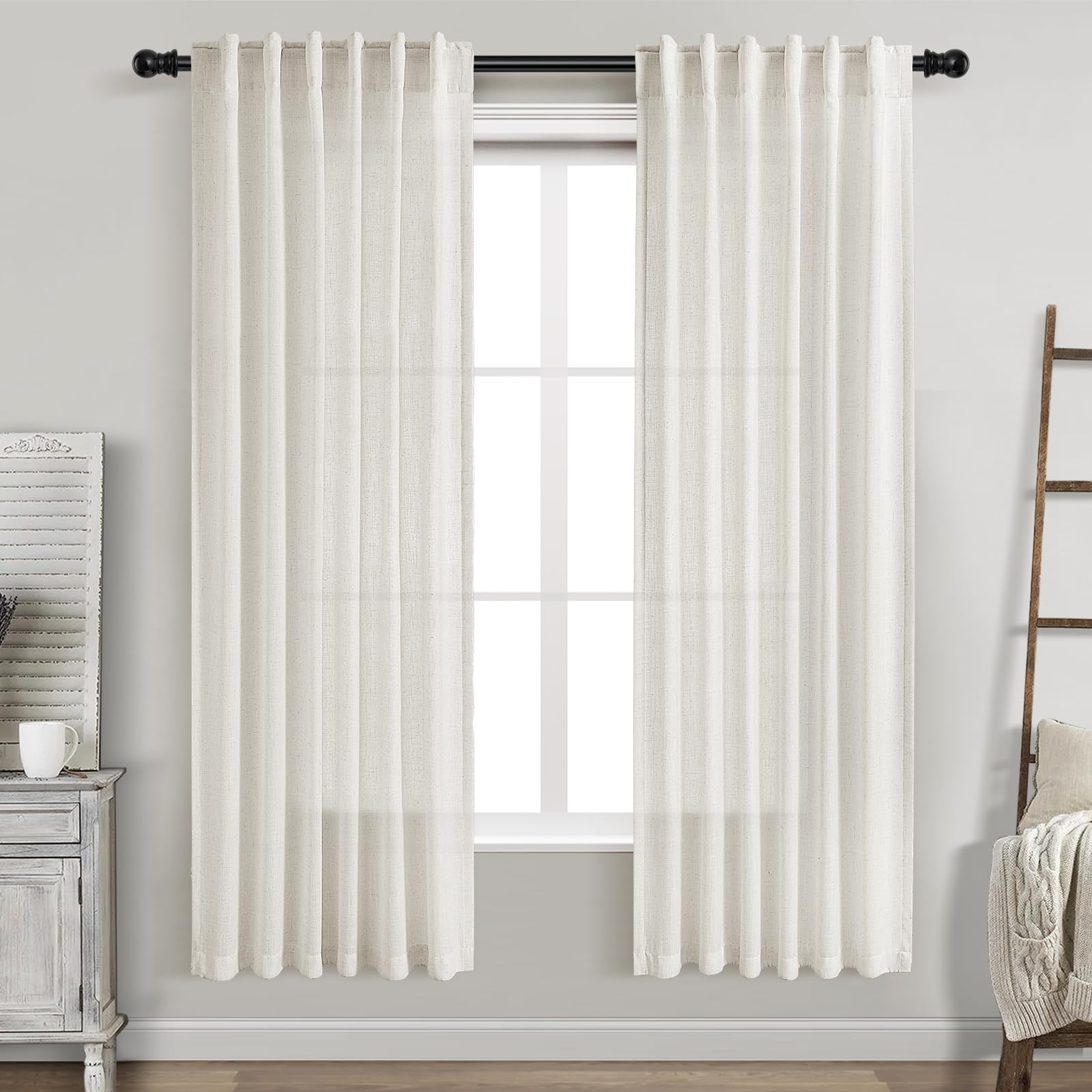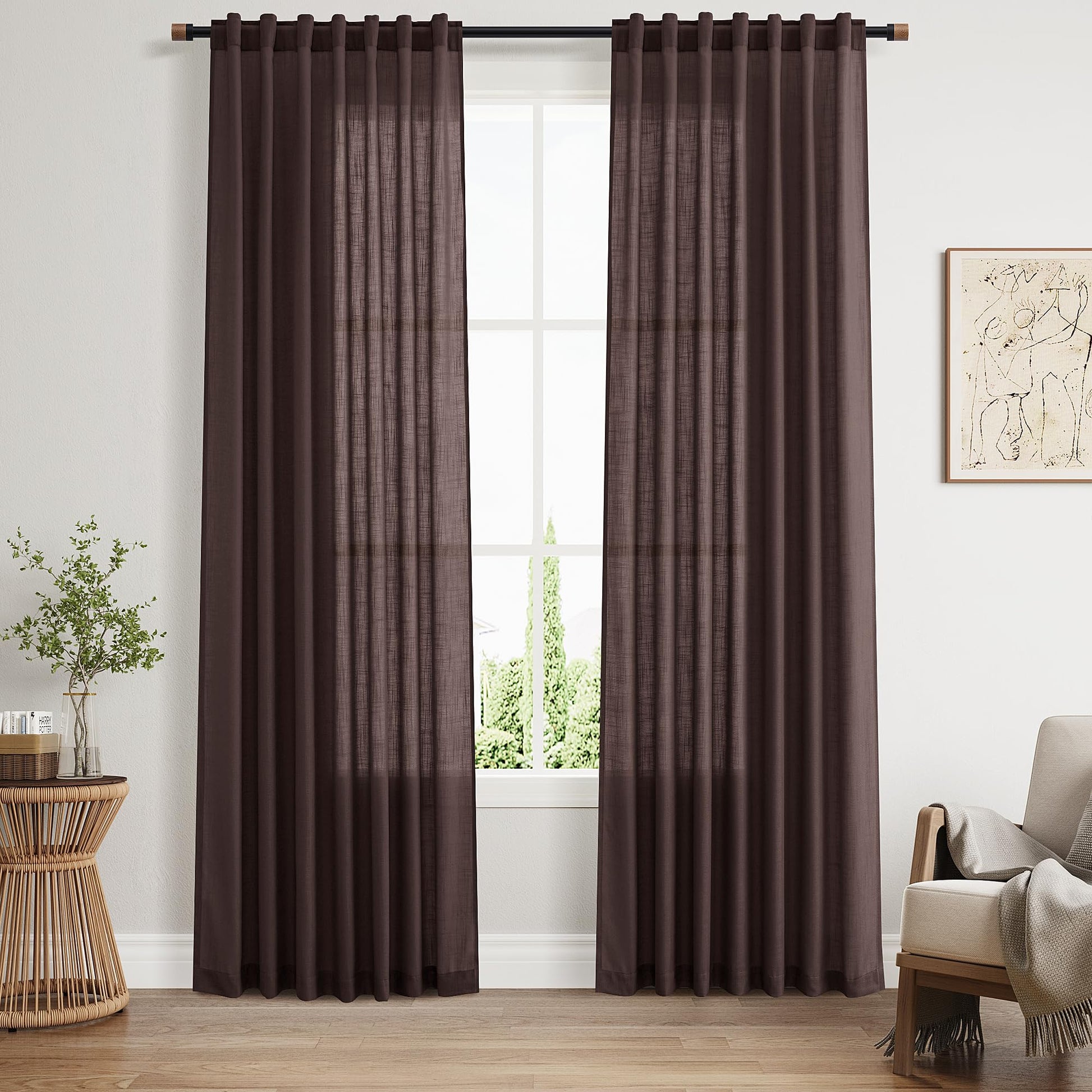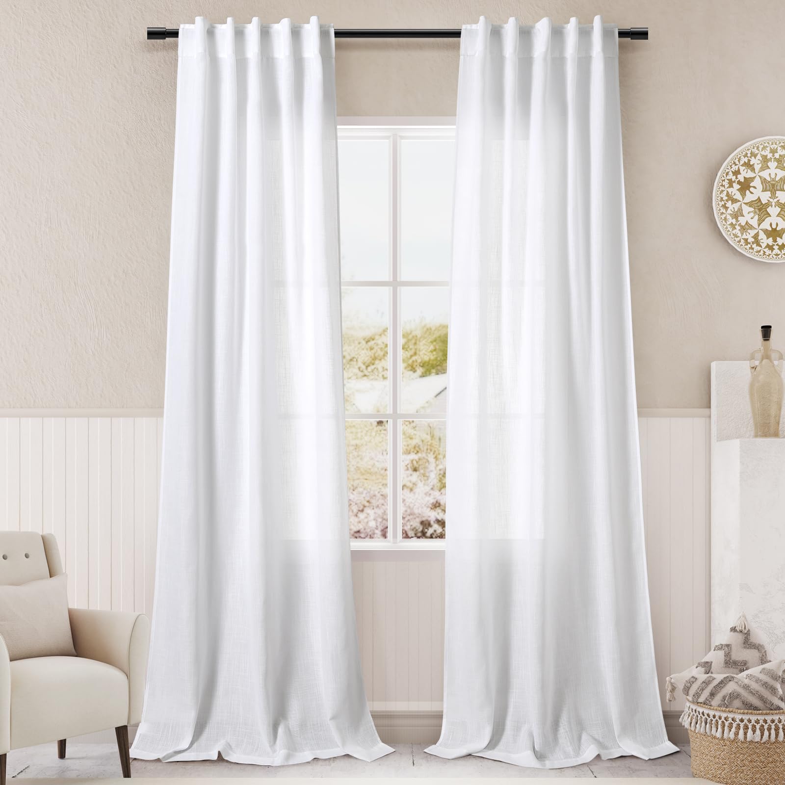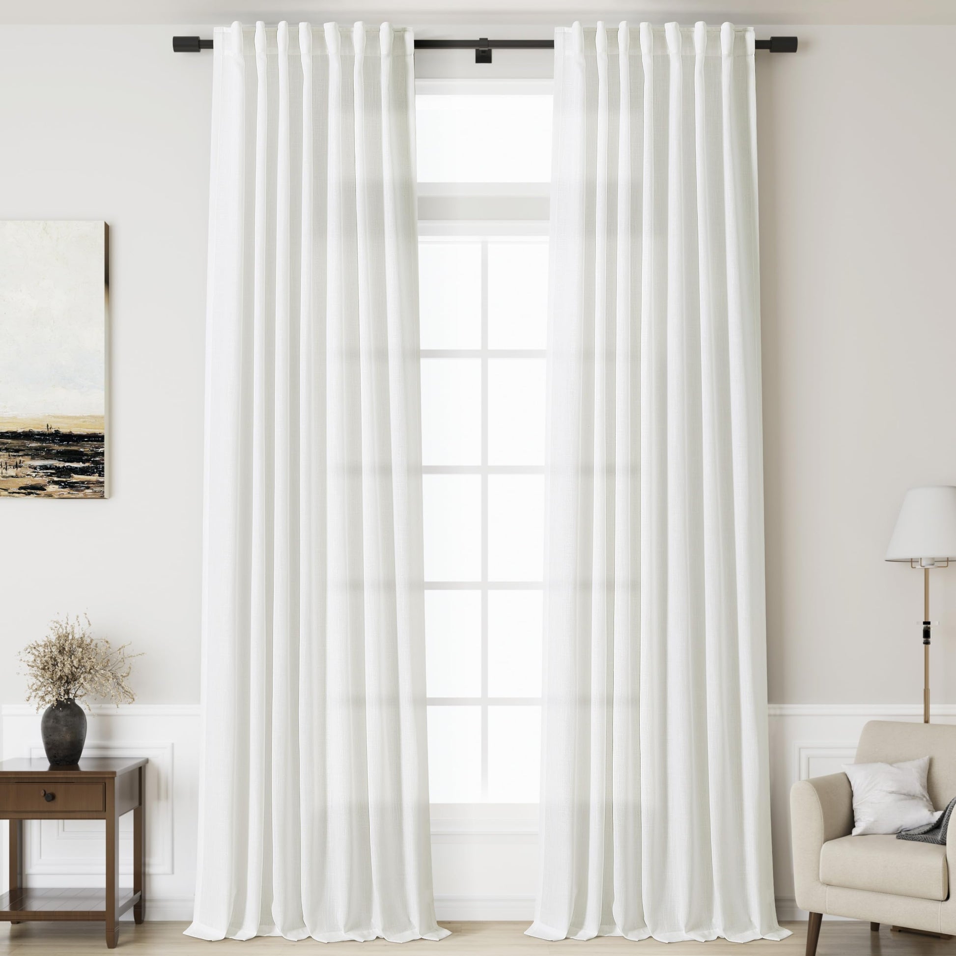 LINEN BLEND FABRIC: Crafted from rich flax linen fabric blended with polyester featuring a neutral linen shade, those panels are more textured than normal sheers and showcase an casual and natural look. Soft touch feeling on these elegant linen blend draperies add an rustic classic and refreshing charm to your window