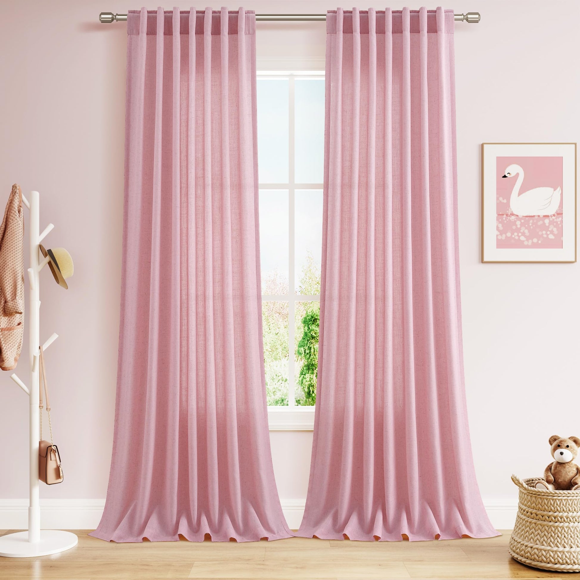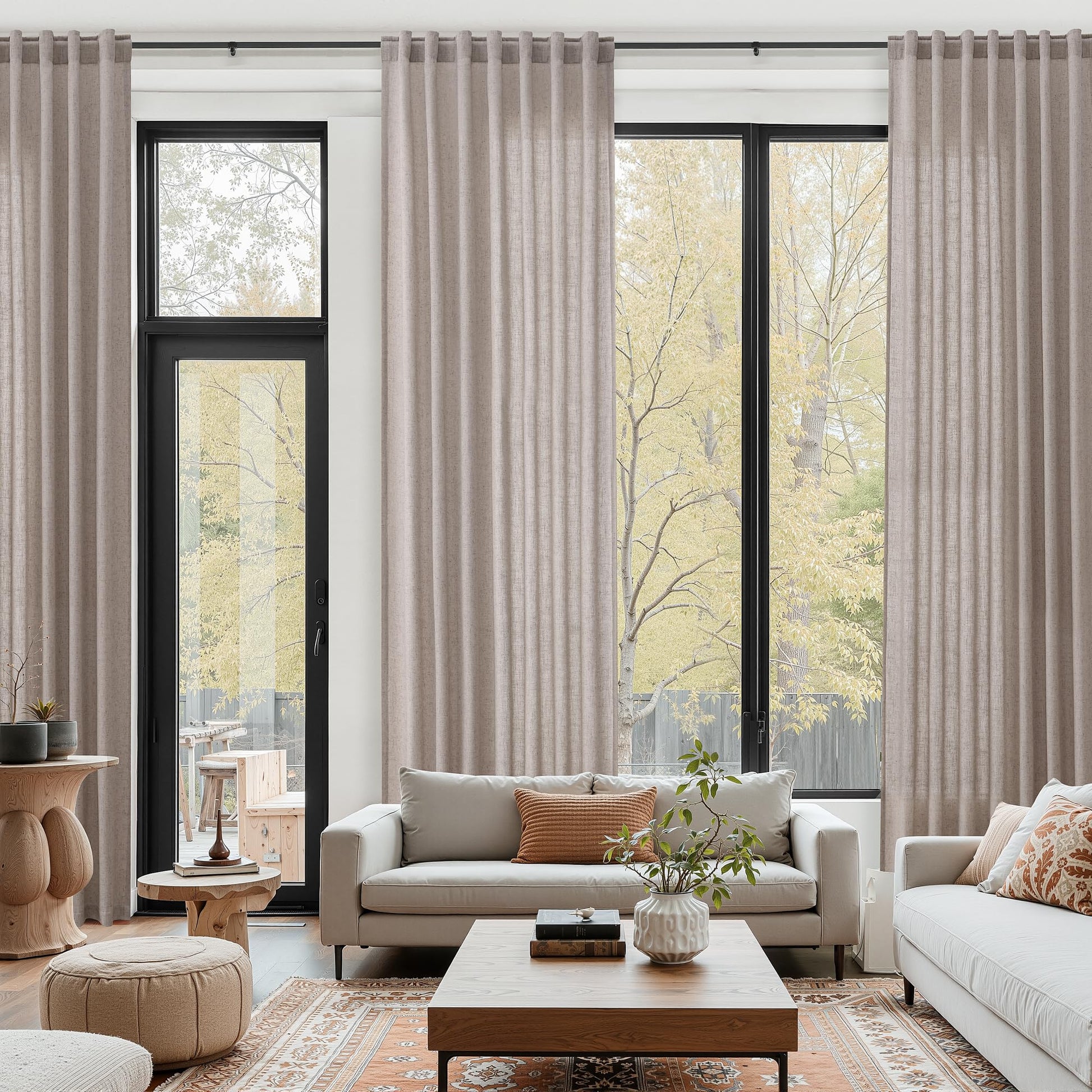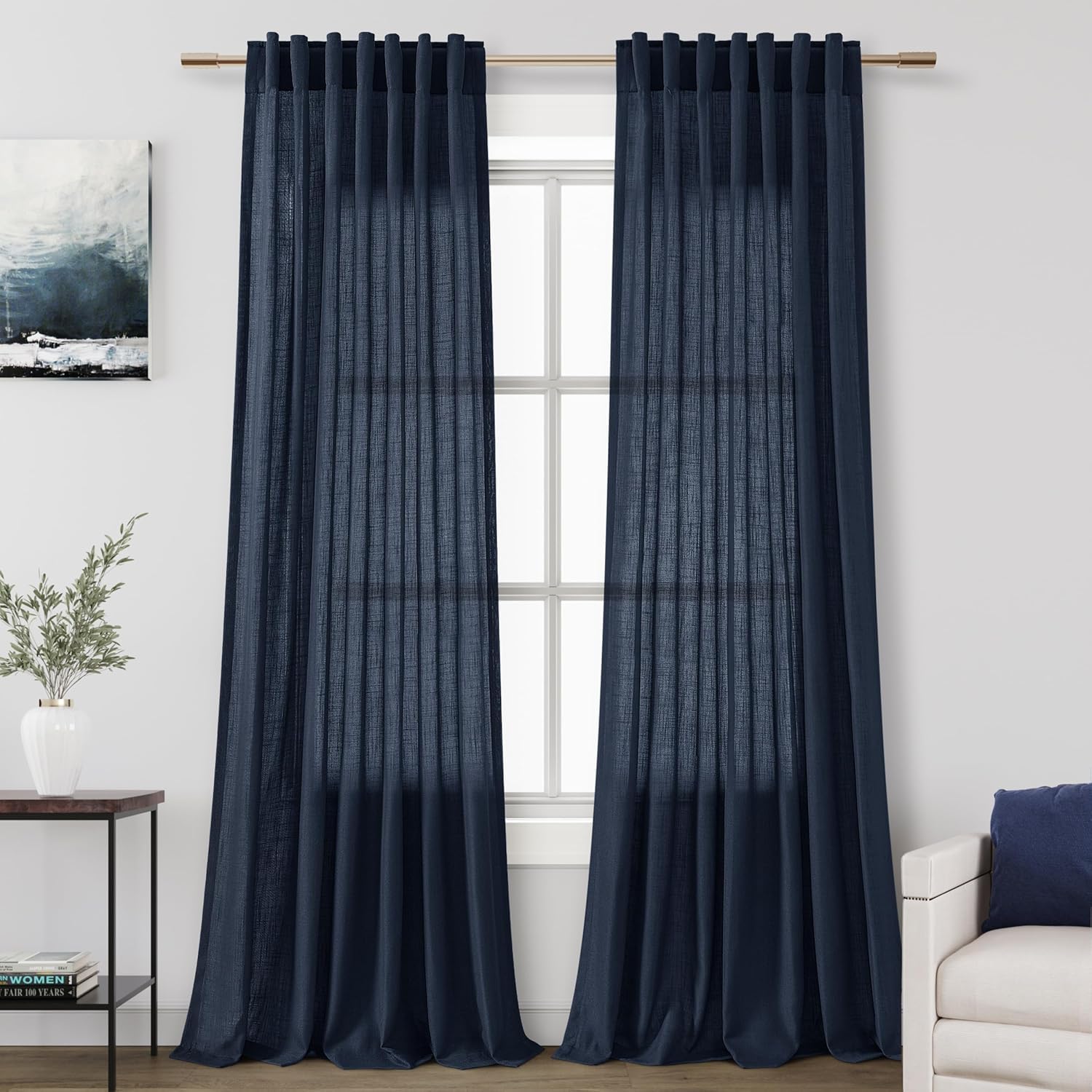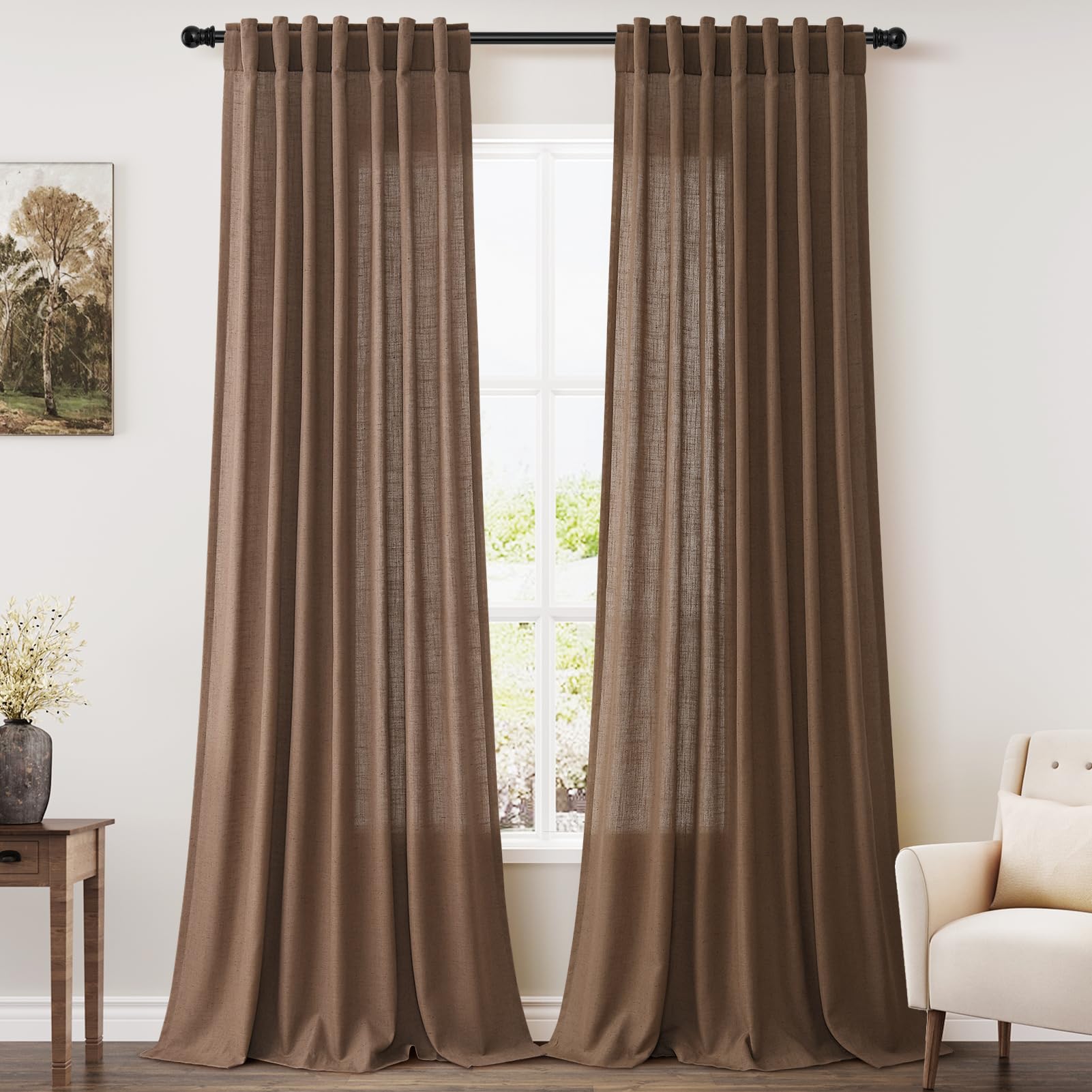 LINEN BLEND FABRIC: Crafted from rich flax linen fabric blended with polyester featuring a neutral linen shade, those panels are more textured than normal sheers and showcase an casual and natural look. Soft touch feeling on these elegant linen blend draperies add an rustic classic and refreshing charm to your window