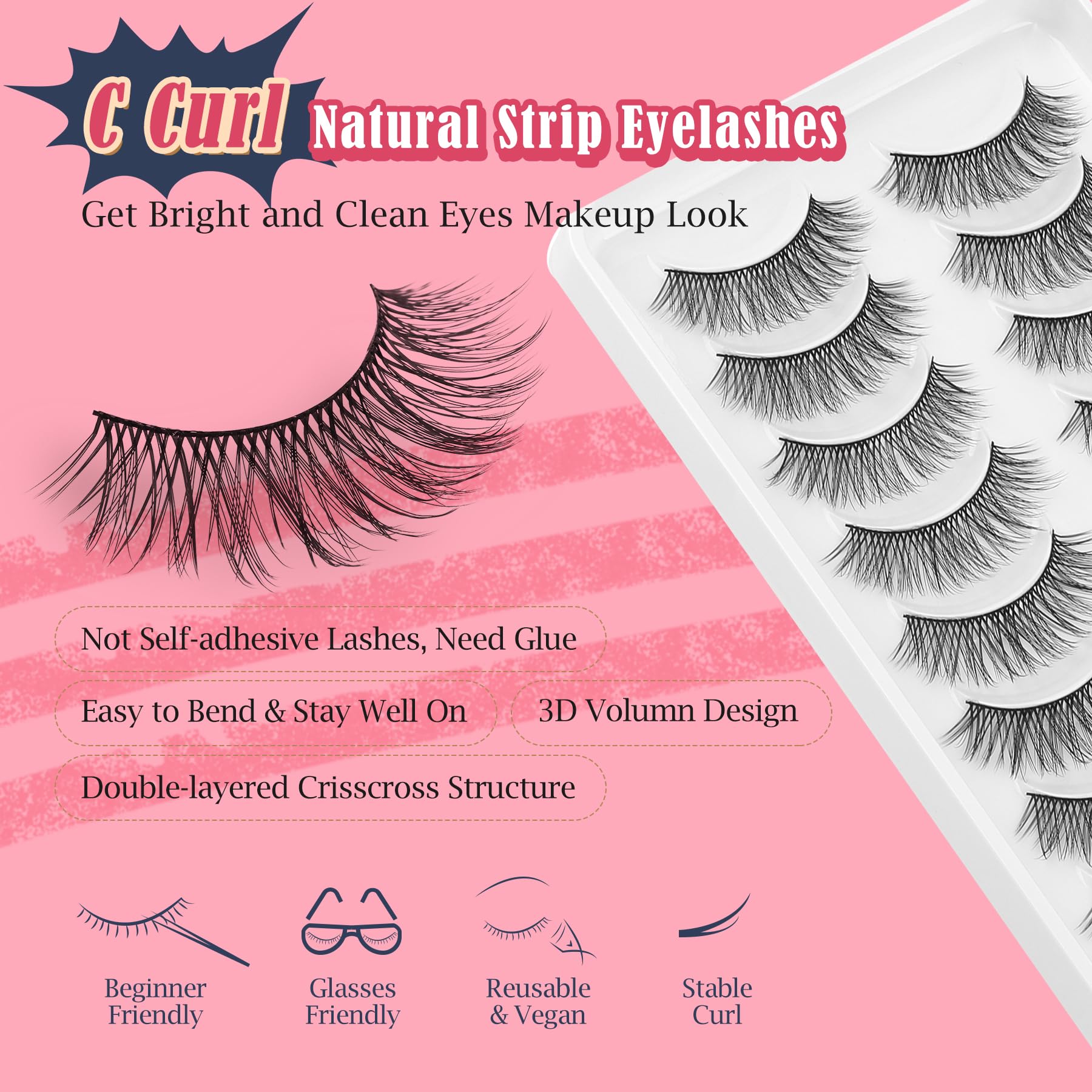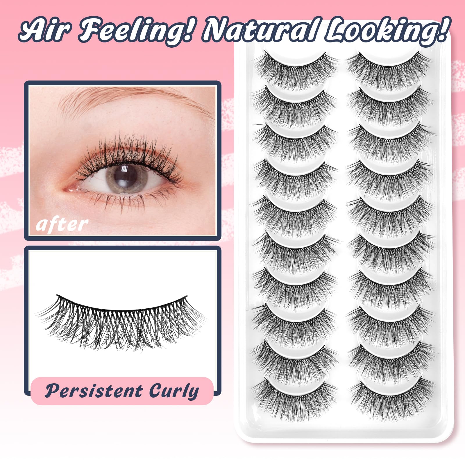 Natural Lashes Wispy False Eyelashes Short Lashes Soft Strip Lashes C Curl Eye Lashes Natural 10mm Short Eyelashes 10 Pair Eye Lashes Pack Siligli