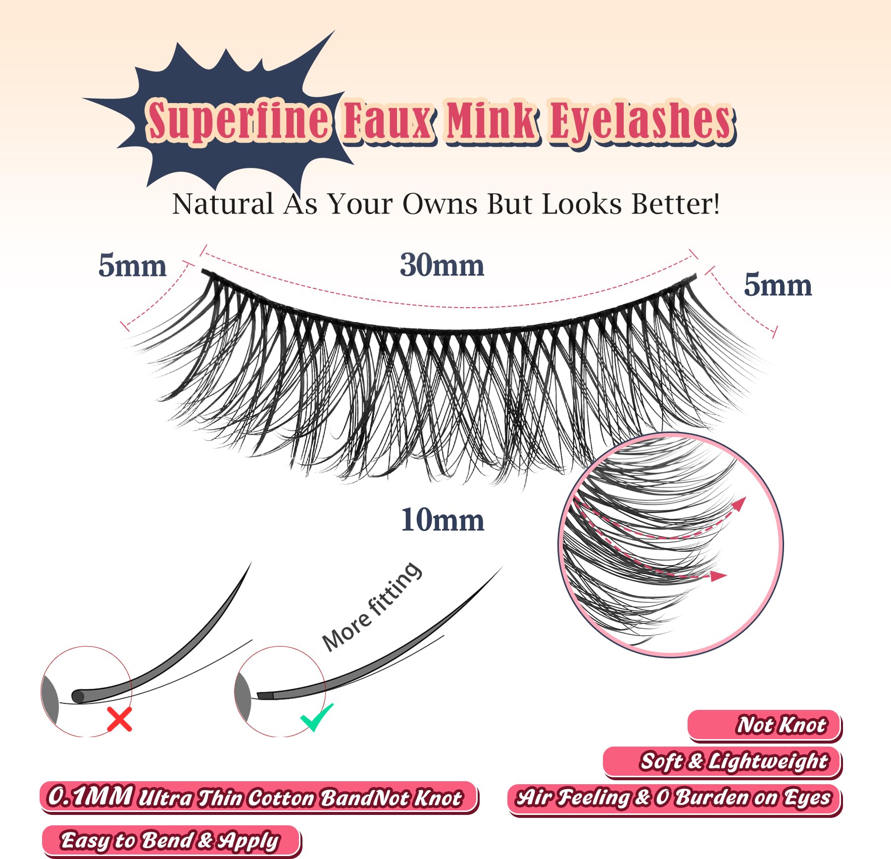 - Thin Flat Band Of Natural Eyelashes: 0.1mm ultra thin cotton flat band tech, lightweight and incredibly flexible, seamlessly blend to your real eye lashes and keep well on. No burden on your eyes and no harm to your natural eyelashes, beginner friendly