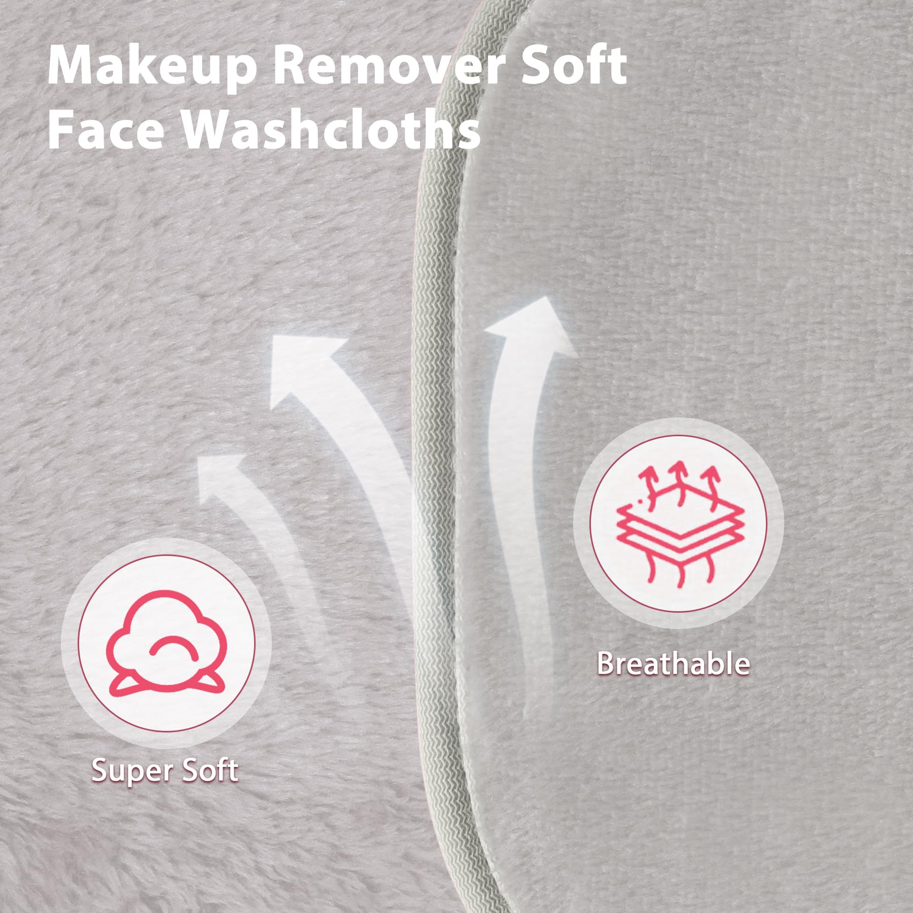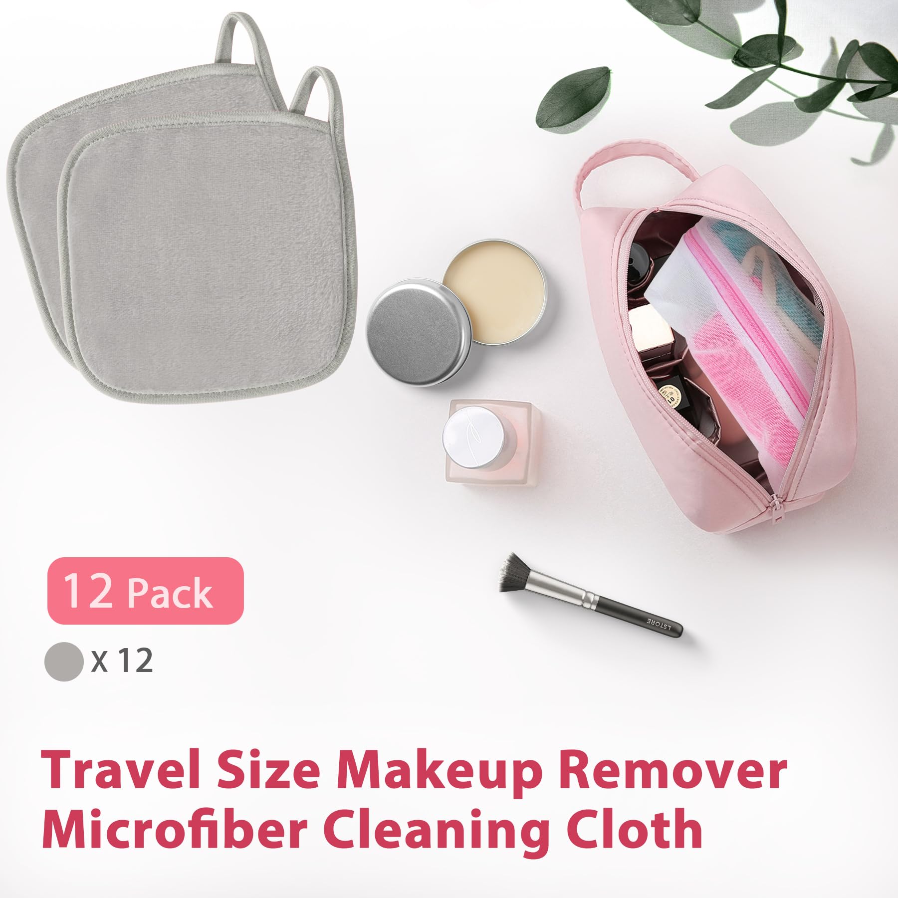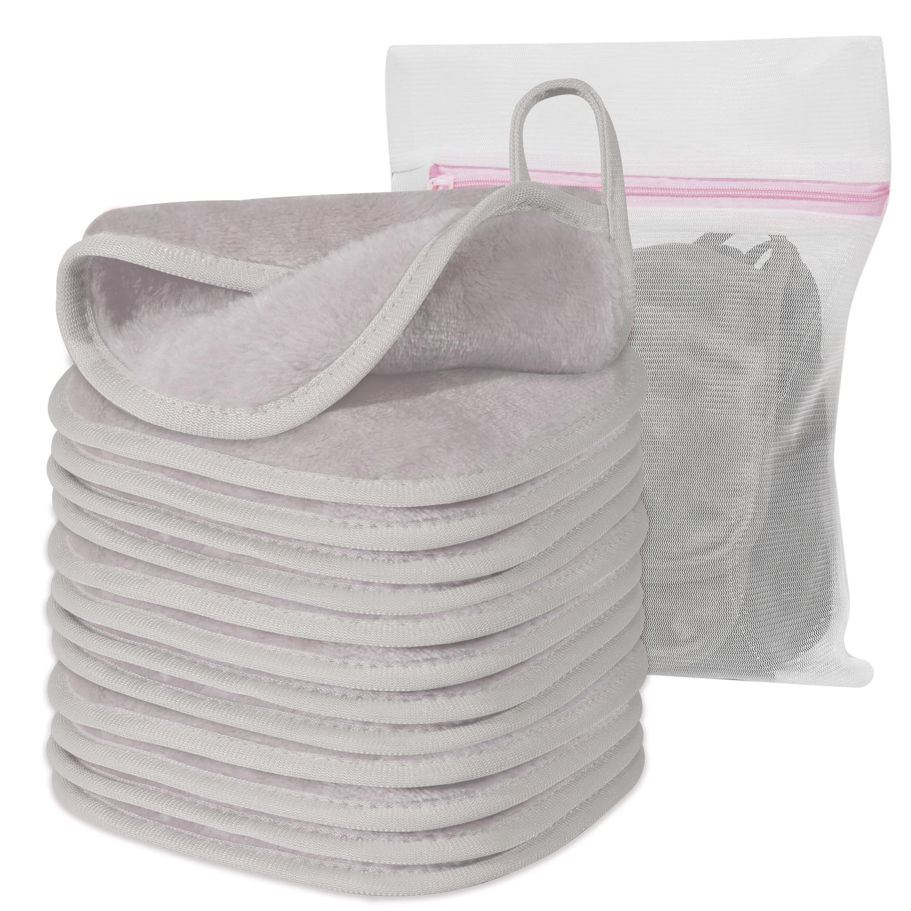Natwag Makeup Remover Cloth, 6" x 6" Make Up Towels Reusable Face Cloth for Washing Face, 12 Pack Makeup Remover Pads Microfiber Face Washcloth with Mesh Bag, Light Grey