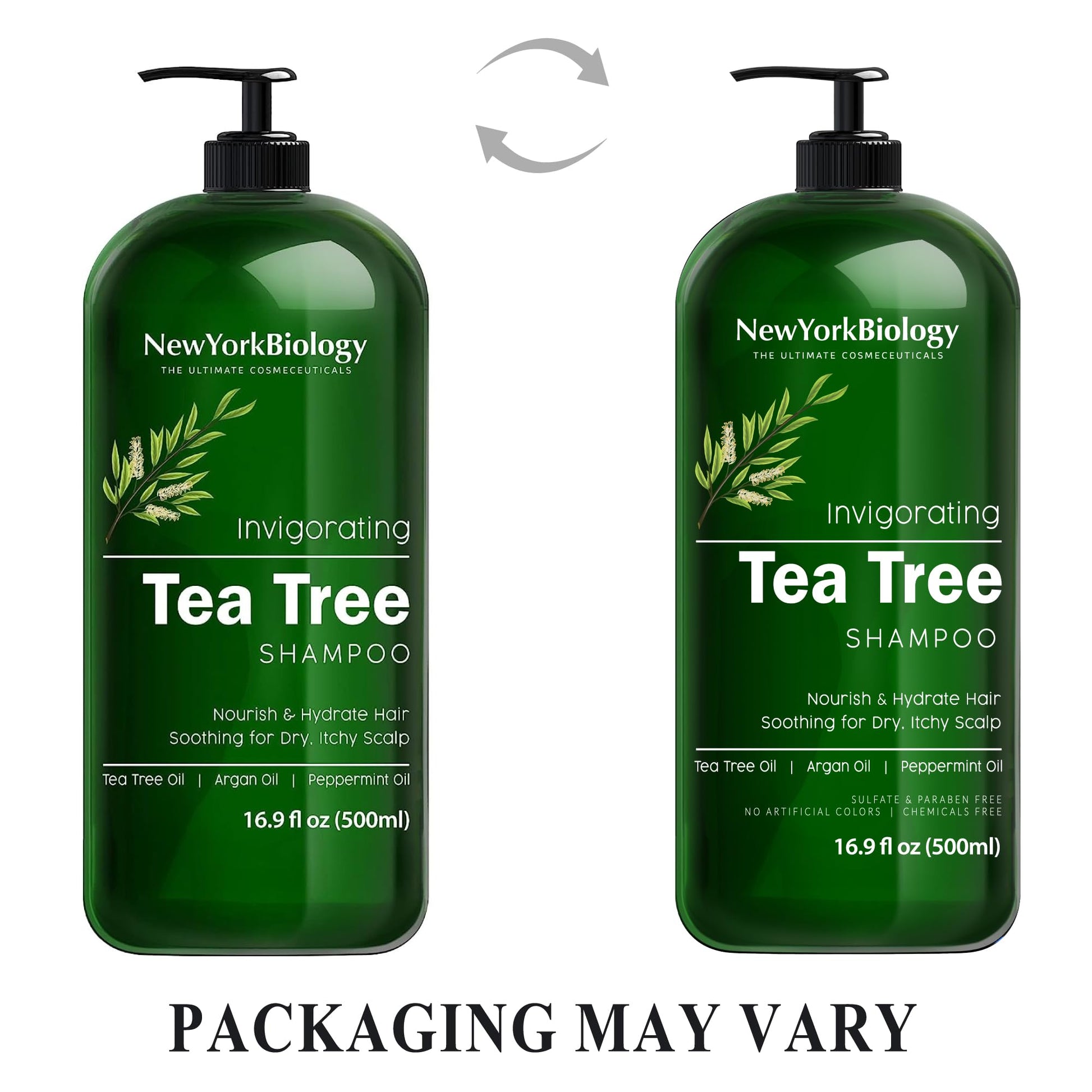 New York Biology Tea Tree Shampoo – Deep Cleanser – Relief for Dandruff and Dry Itchy Scalp – Therapeutic Grade - Helps Promote Hair Growth – 16.9 fl Oz - Pack of 2