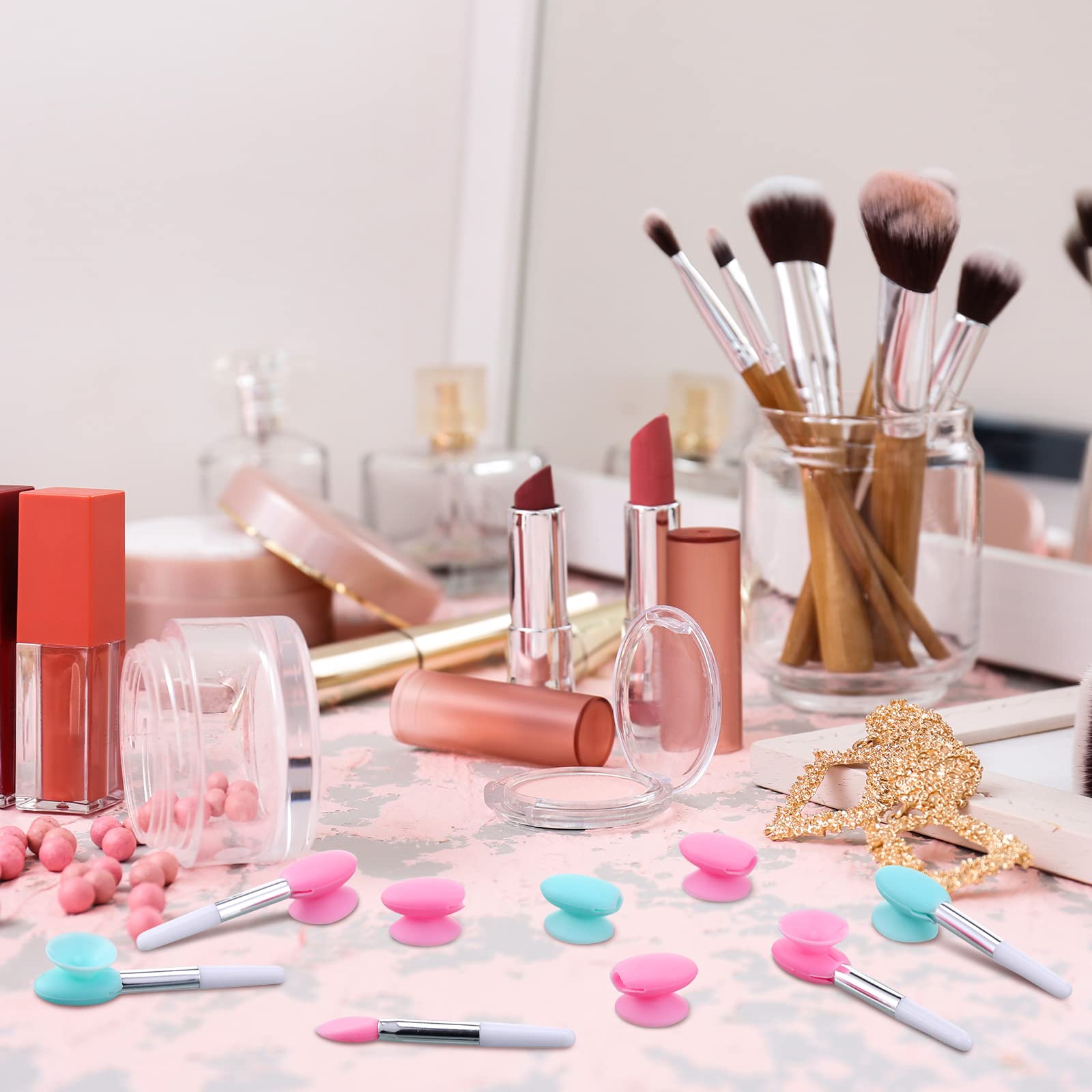Newtay 20 Pcs Silicone Lip Brush Covers and Brushes for Lip Sticks, Gloss, Balm and Other Cream Makeup Products(Pink, Green)
