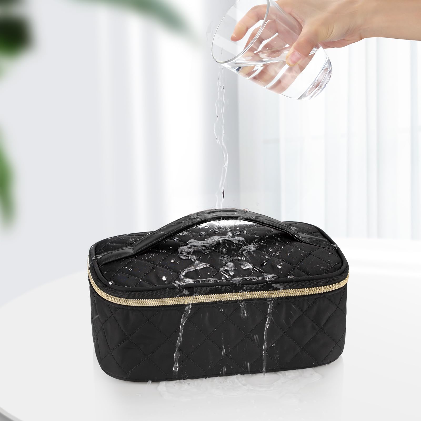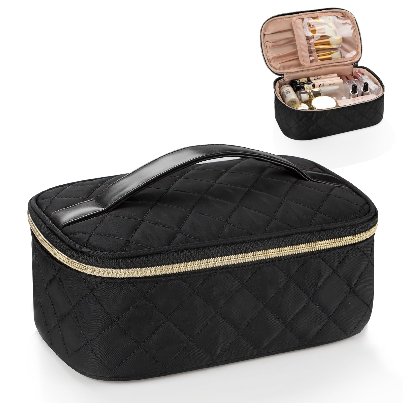 OCHEAL Travel Makeup Bag,large Capacity Travel Cosmetic Bag,Medium Makeup Bag Organizer Diamond Texture Makeup case with Handle and Brush Storage Area -Black