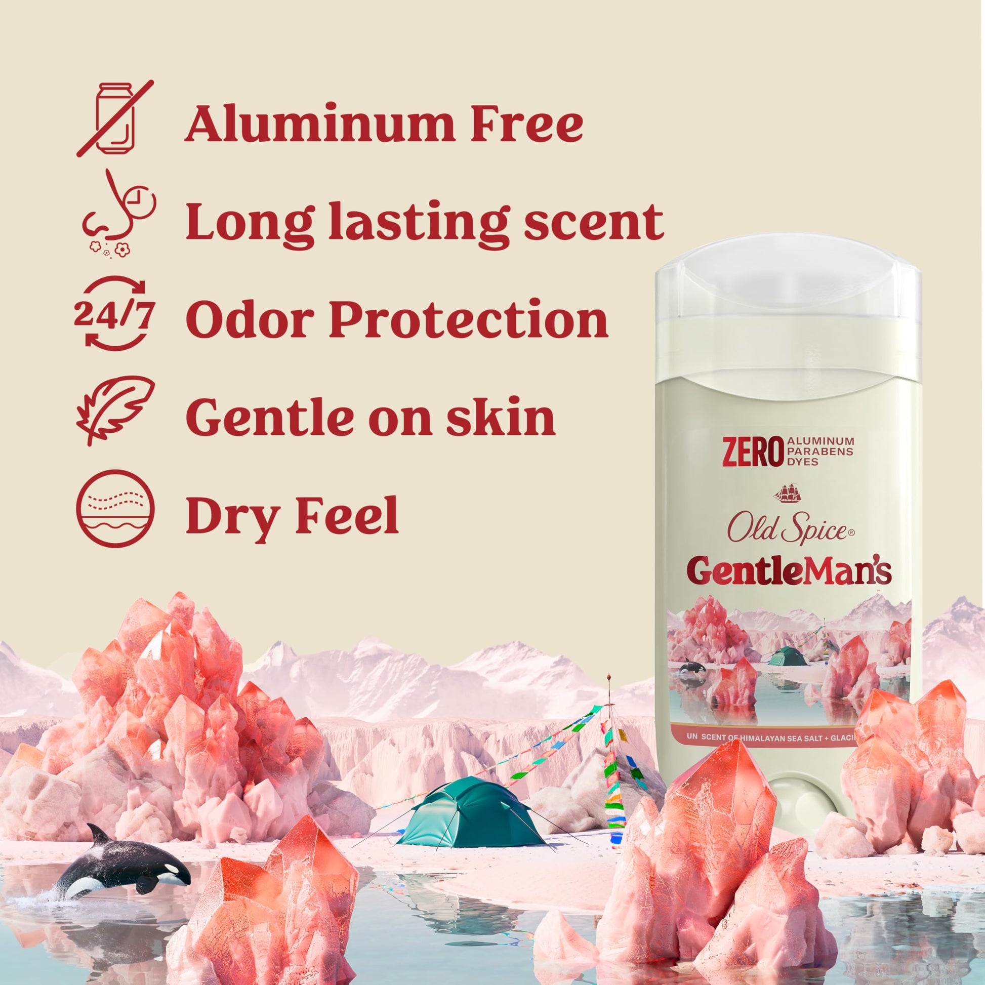 Details: Old Spice GentleMan's Blend Aluminum Free deodorant was uniquely crafted to be gentle on skin. 24/7 odor protection with daily use so you can feel confident that you're protected. It comes in the fresn scent of Himalayan Sea Salt + Glacier Water, so for those of you who have been dreaming of bathing with polar bears in their natural habitat, you’re welcome. Also available in Body Wash.