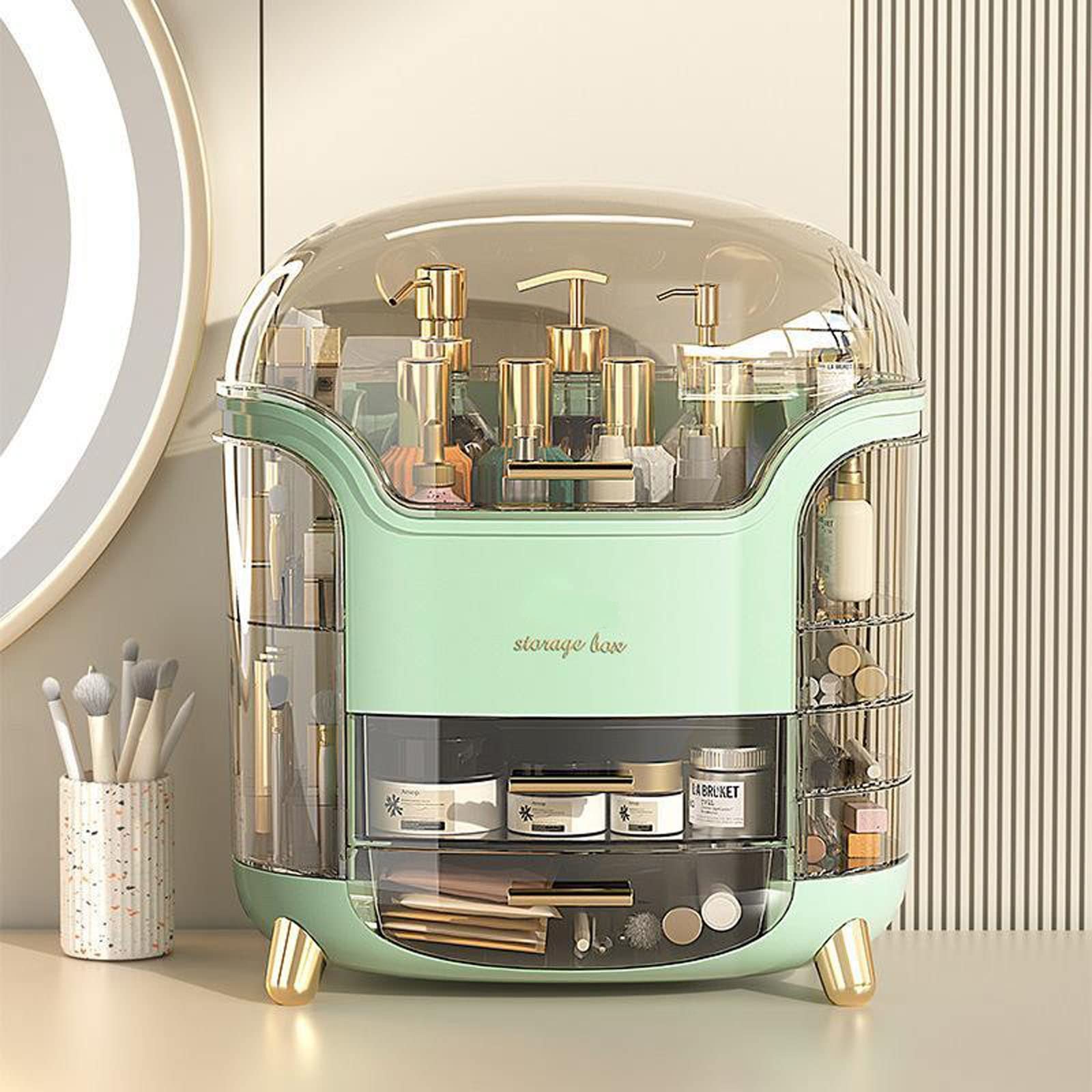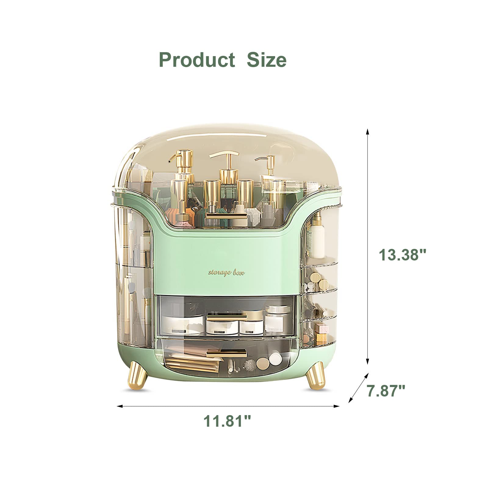 - 【Cosmetics Display Case】Makeup Organizer Size:11.81"*7.87"*13.38". Portable light luxury series Multi-function makeup box, Green and White cosmetic storage box with transparent acrylic cover can stand and golden handle, and made of safe and non-toxic high-grade acrylic + ABS material, silicone anti-slip pad, dustproof and waterproof.