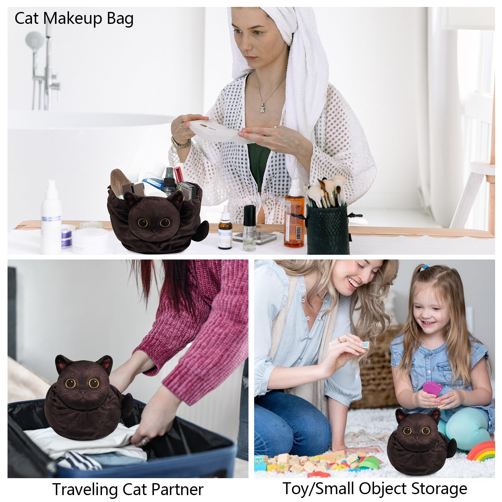 - Travel Cat Makeup Bag: Our Large-Capacity Travel Makeup Bag Is Perfect for Use at Home and on the Go, Whether You're on Vacation, at the Gym. It Has Enough Space for All Your Needs Without Being Bulky. You Can Also Use It to Store Your Kids’ Small Toys and Snacks