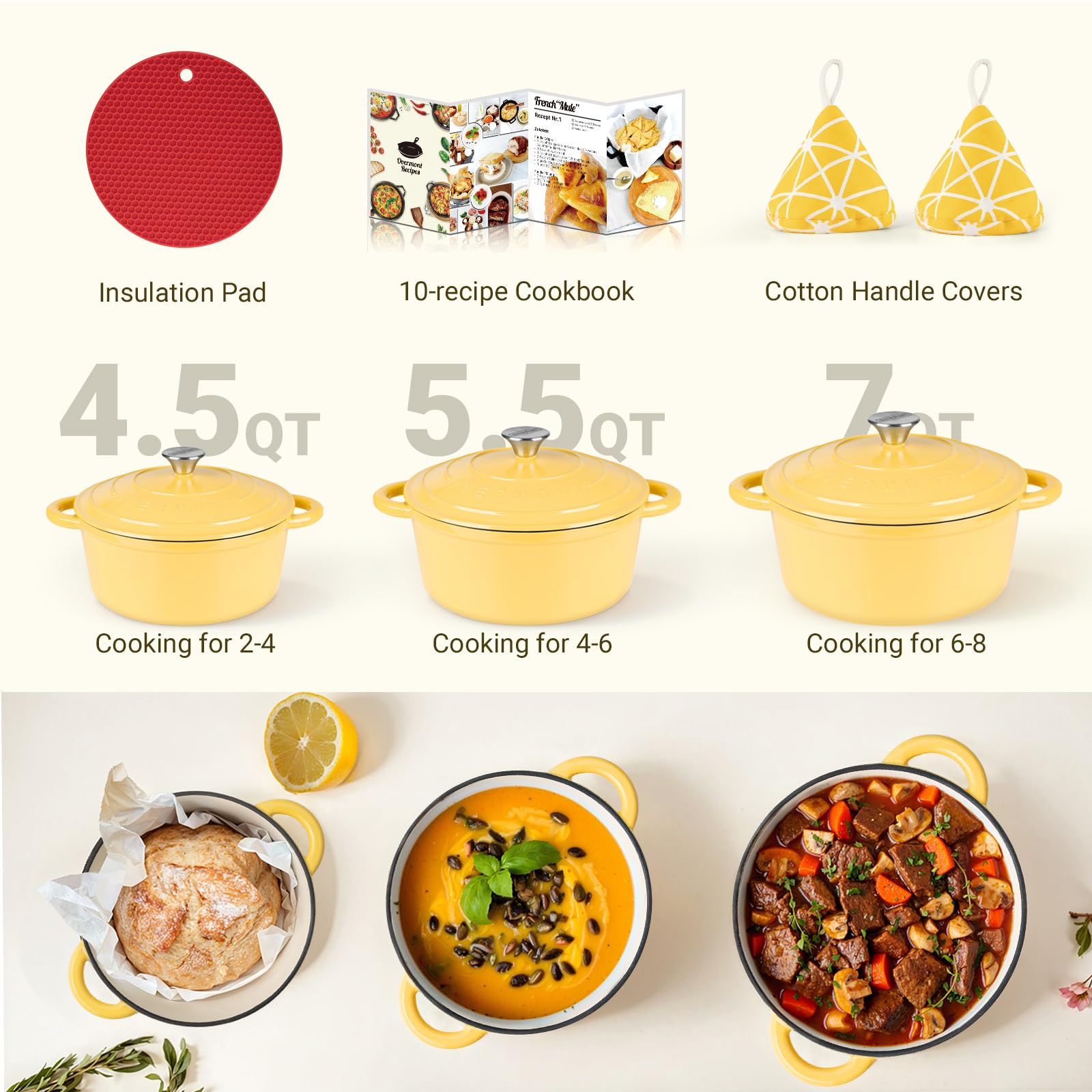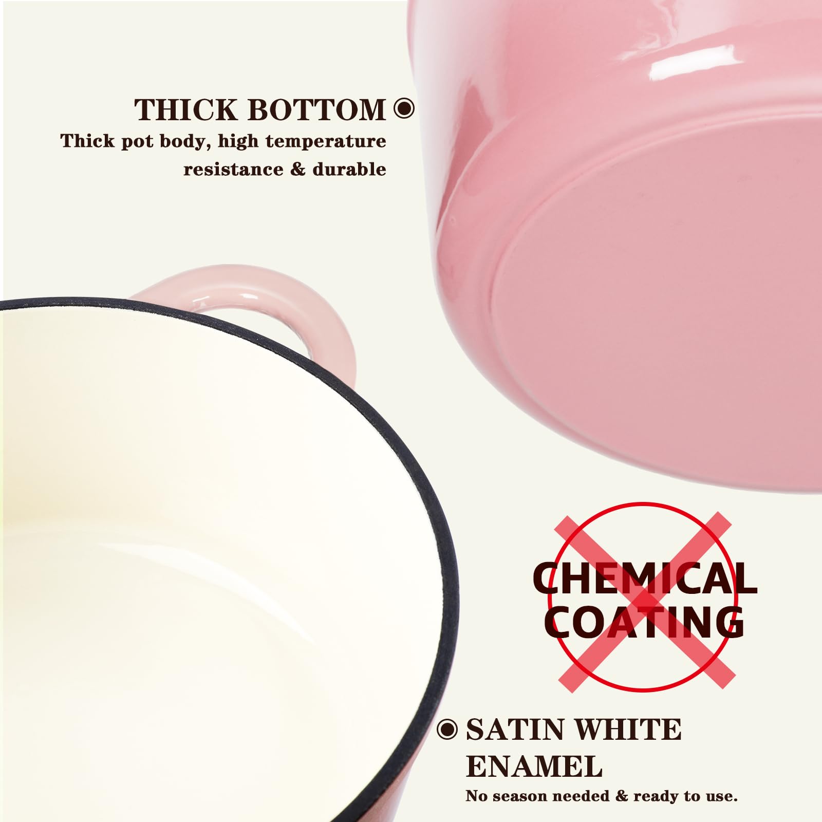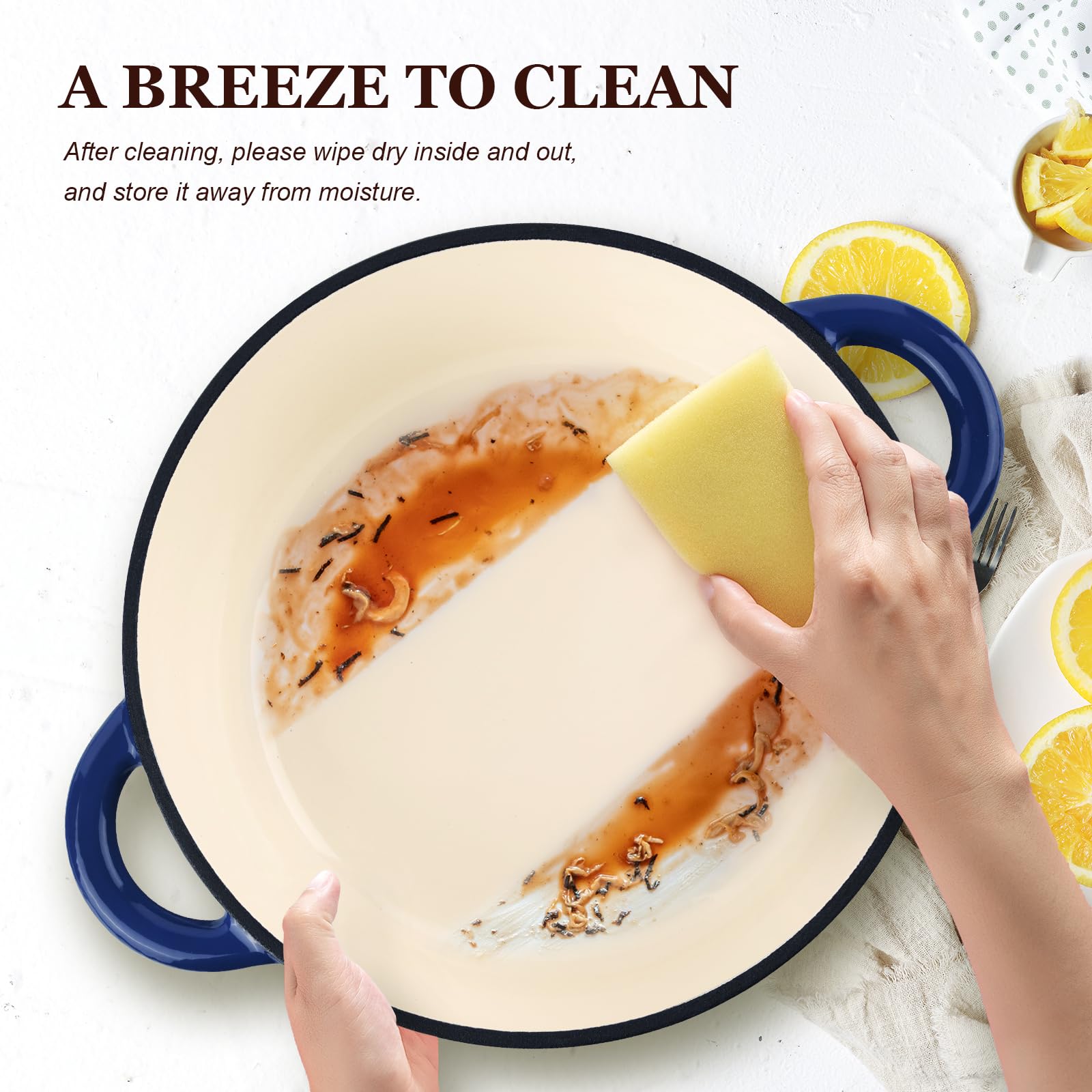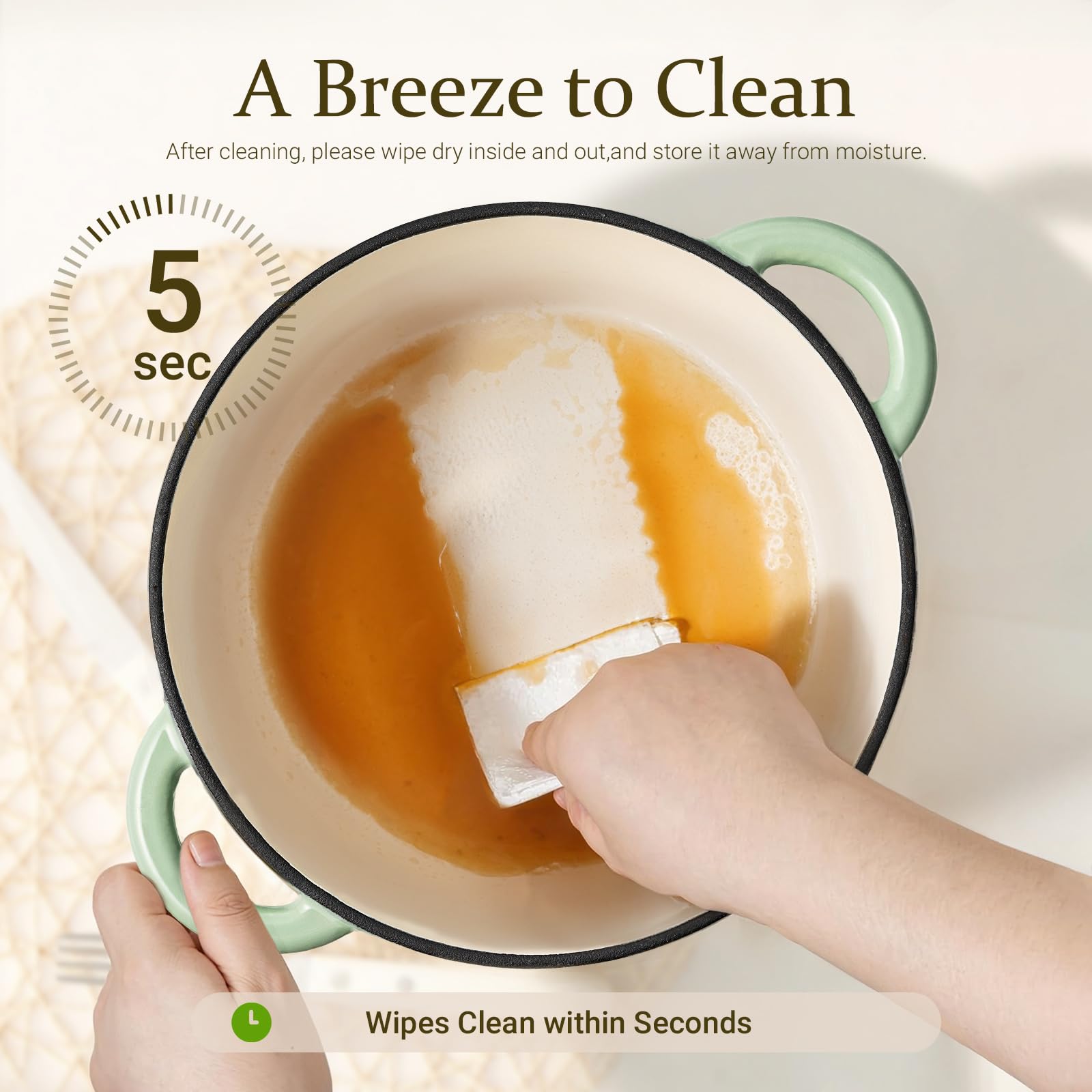- Effortless Cleaning & Safety First: The flat and smooth enamel surface not only delivers a superior cooking experience but also makes cleaning a breeze. Easily remove food residues with a gentle wipe from a soft sponge or cloth. Additionally, we've included a cotton heat-resistant cap, ensuring a comfortable grip and safeguarding you from burns when handling the pot's handles and lid.