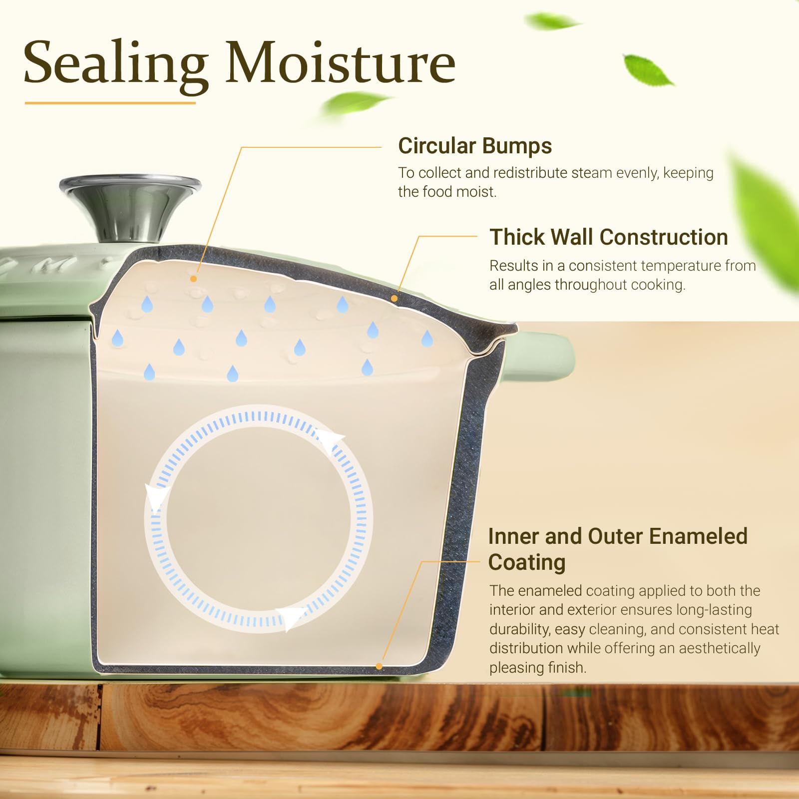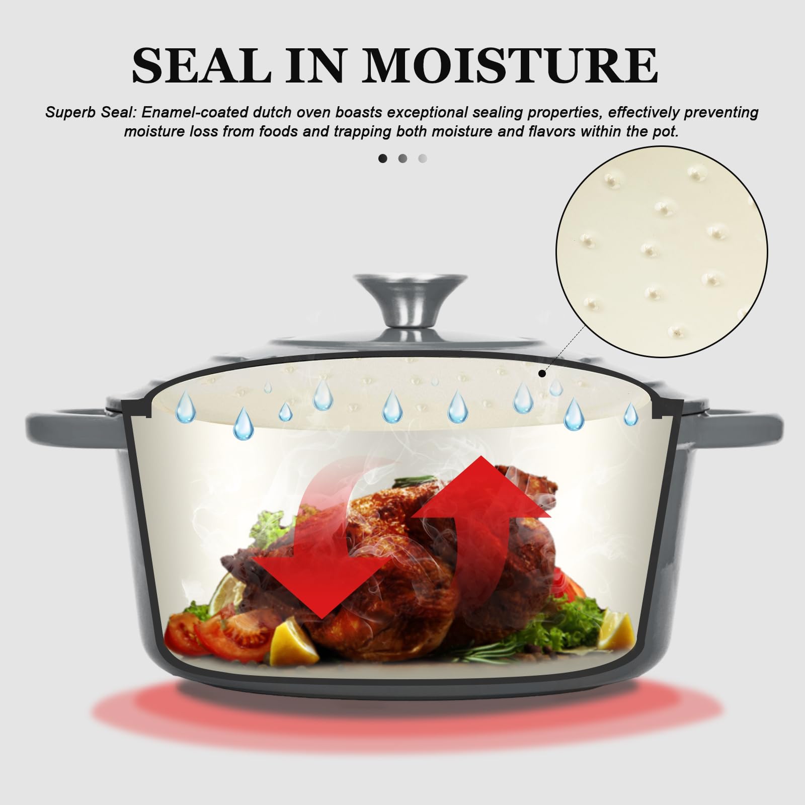 - Perfectly Preserved Flavors: Say goodbye to dry and overcooked meals! With our innovative design, water vapor condenses evenly on the lid, preserving the ideal humidity and flavors. Unlike traditional pot covers where condensation runs down the sides, our lid keeps your dishes succulent.