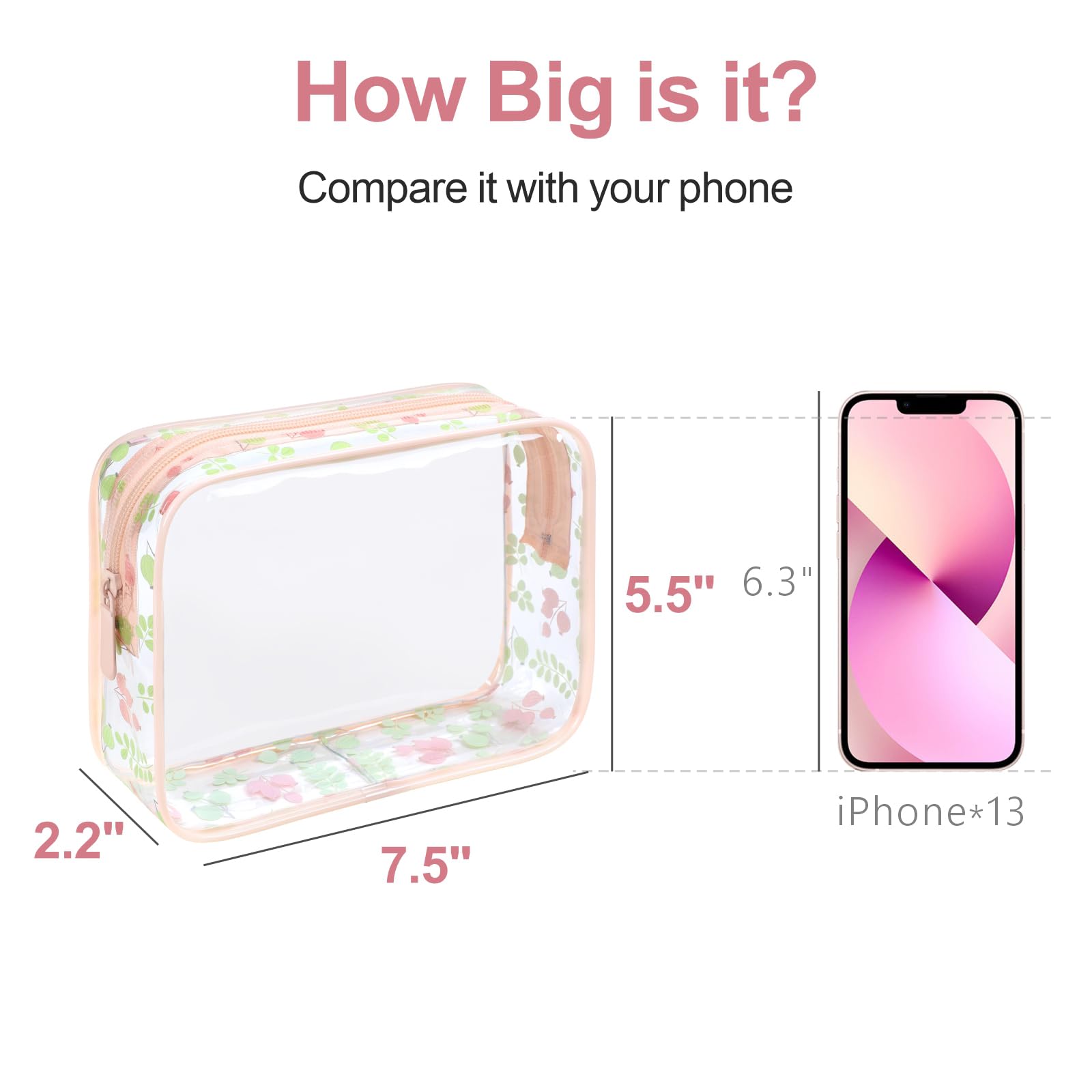 - High-Quality, Durable: The clear makeup bags keep the shape with reinforced boning. Smooth metal zipper for longevity, ensuring a secure seal that complies with TSA regulations for sealed bags. Wide opening for easy access. A net weight of only 0.7 lbs per bag, light and feelless