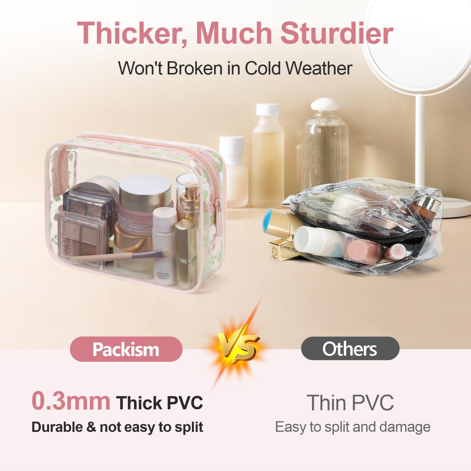 PACKISM TSA Approved Toiletry Bag - Pink Floral Print Clear Travel Bags, Suitable for Gifts, with Supporting Frame, Perfect for Travel Essentials, Thick No Smell