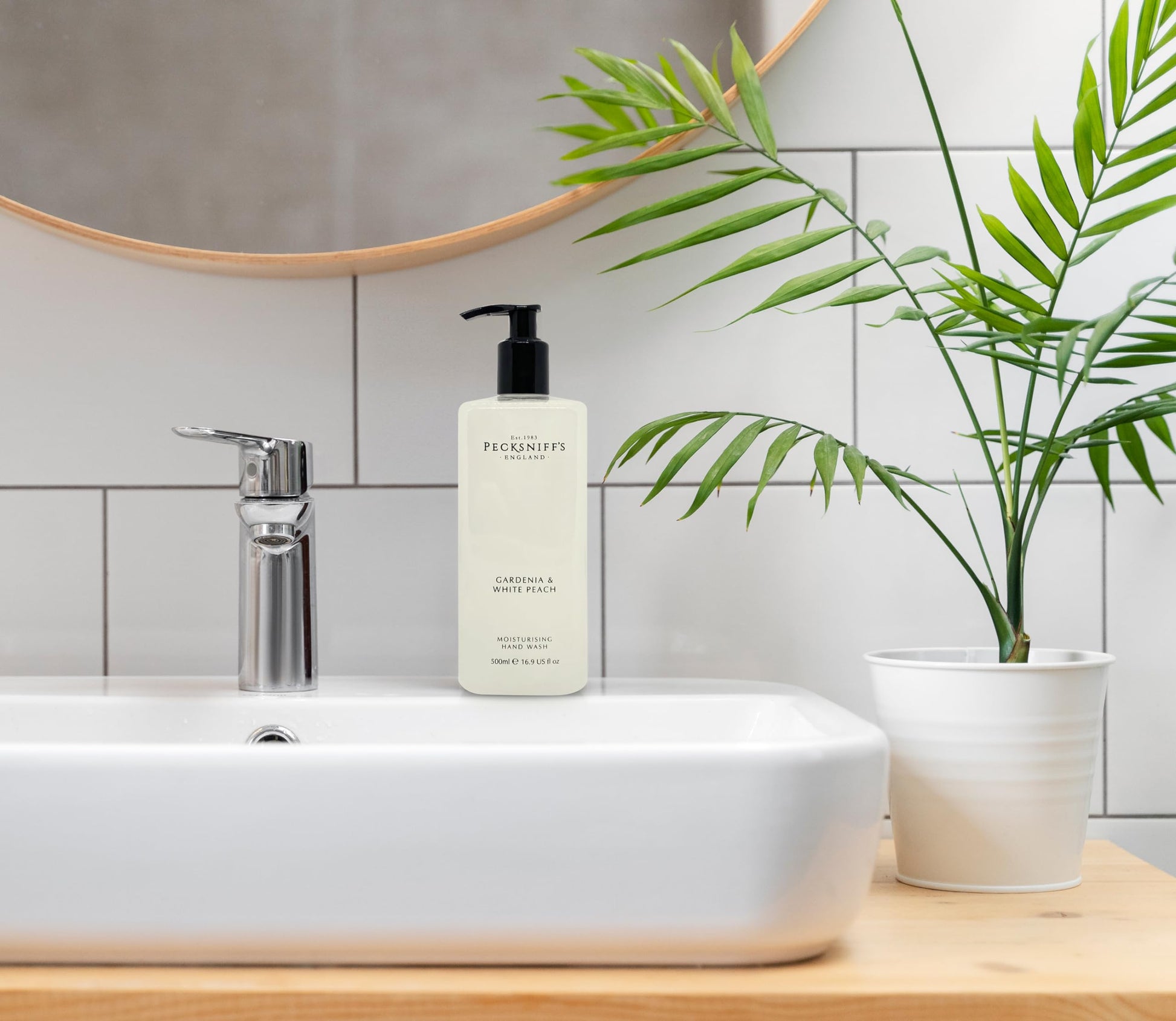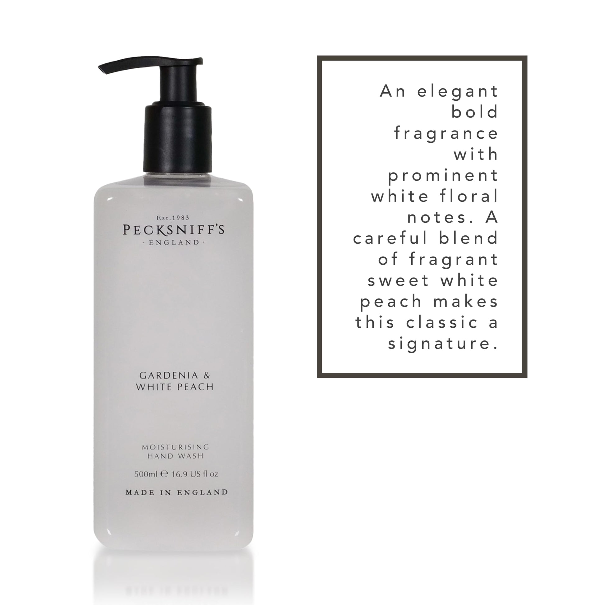 Pecksniff's Moisturizing Hand Wash - Vitamin B Enriched, Natural & Gentle Cleanser, Luxurious Hand Wash 500ml/16.9 fl oz (Gardenia & White Peach)