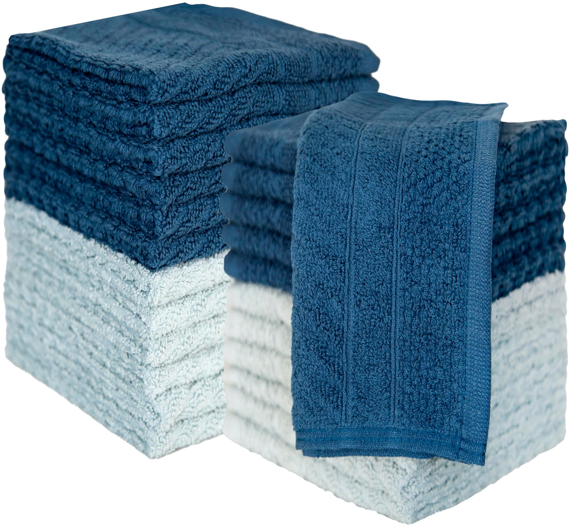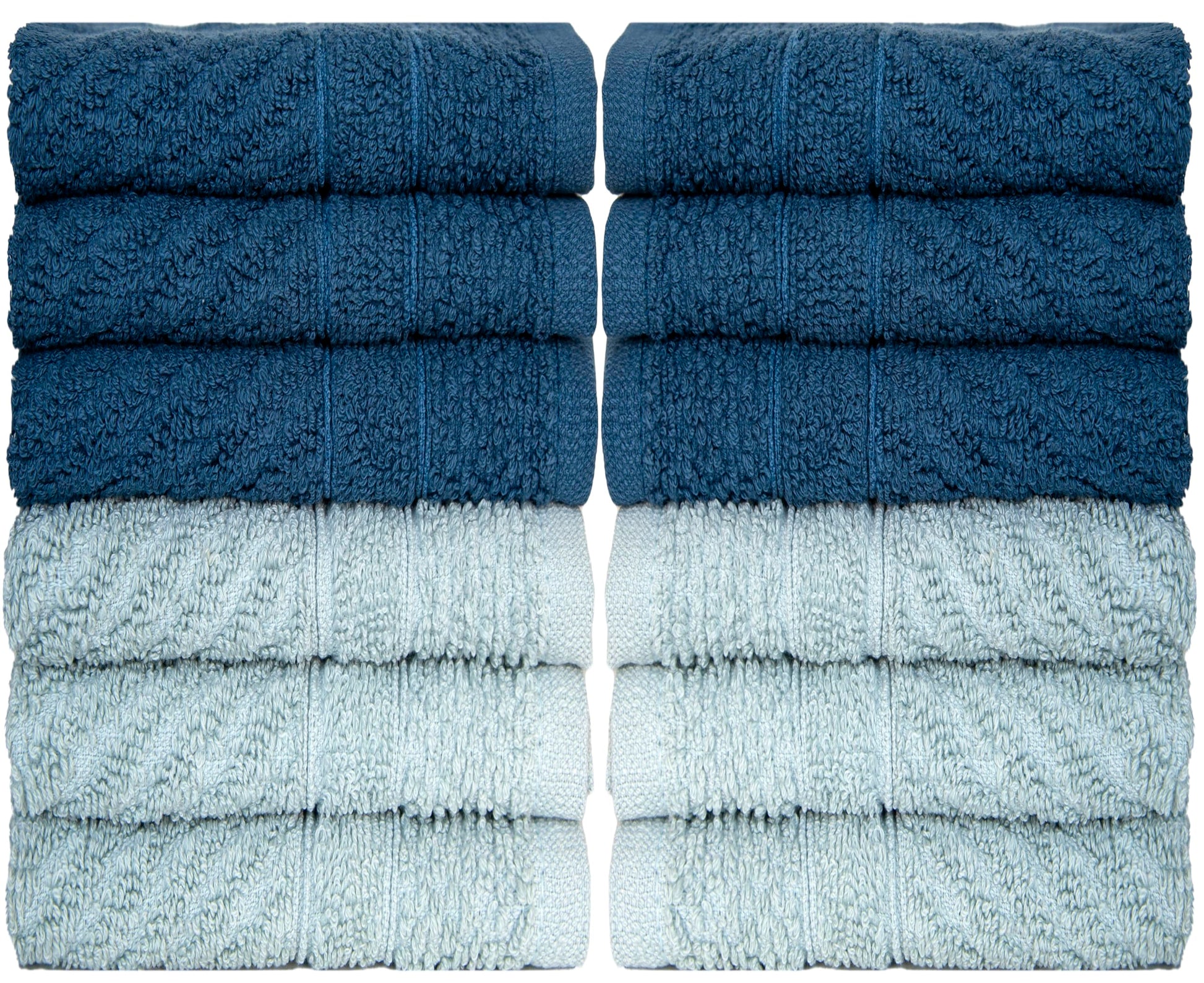 PH Pleasant Home Diagonal Wash Cloths Set - 12 Pack (12” x 12”) – 509 GSM - 100% Ring Spun Cotton Wash Cloth - Super Soft and Highly Absorbent Face Towels (Dark Blue & Light Blue)