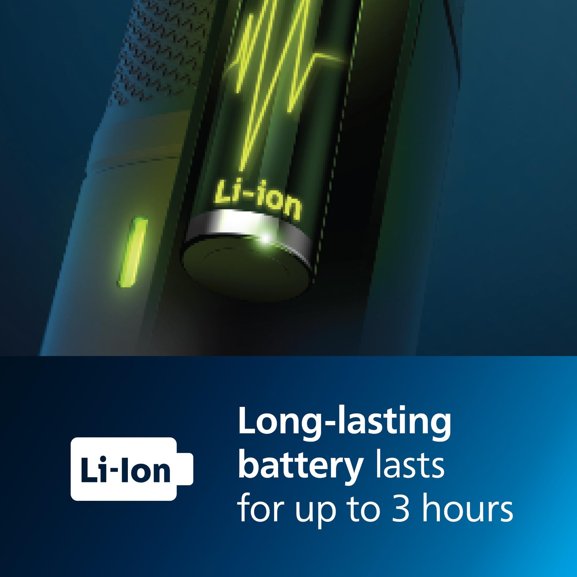 - The long-lasting lithium-ion battery provides up to 3 hours of runtime for long life and maximum power; includes a battery light indicator to know when it's time to charge