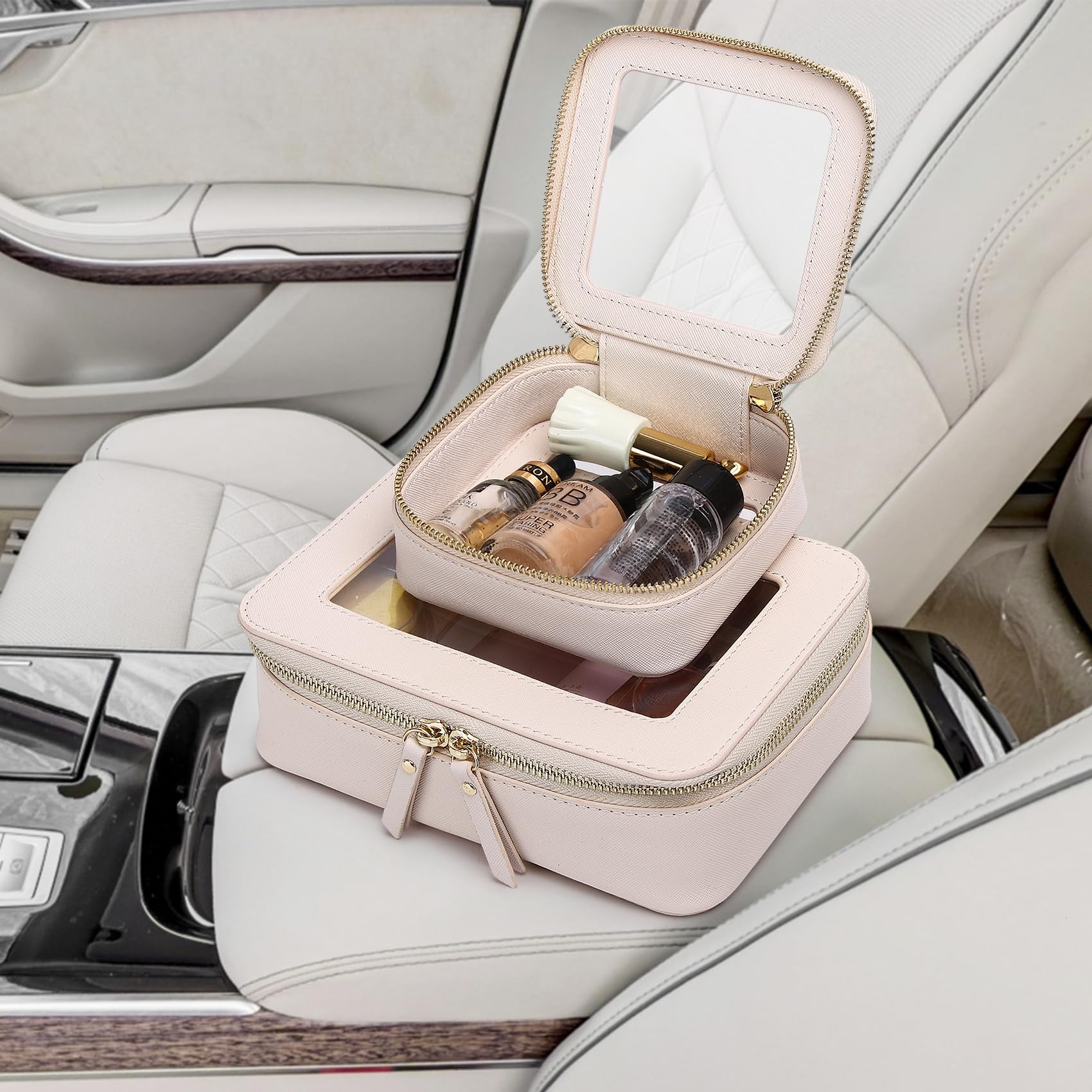Pinkmik Small Makeup Bag Mini Clear Cosmetic Makeup Case & Toiletry Bag with Zipper Women's Purse Organizer & Car Essentials (Beige, MINI-1)