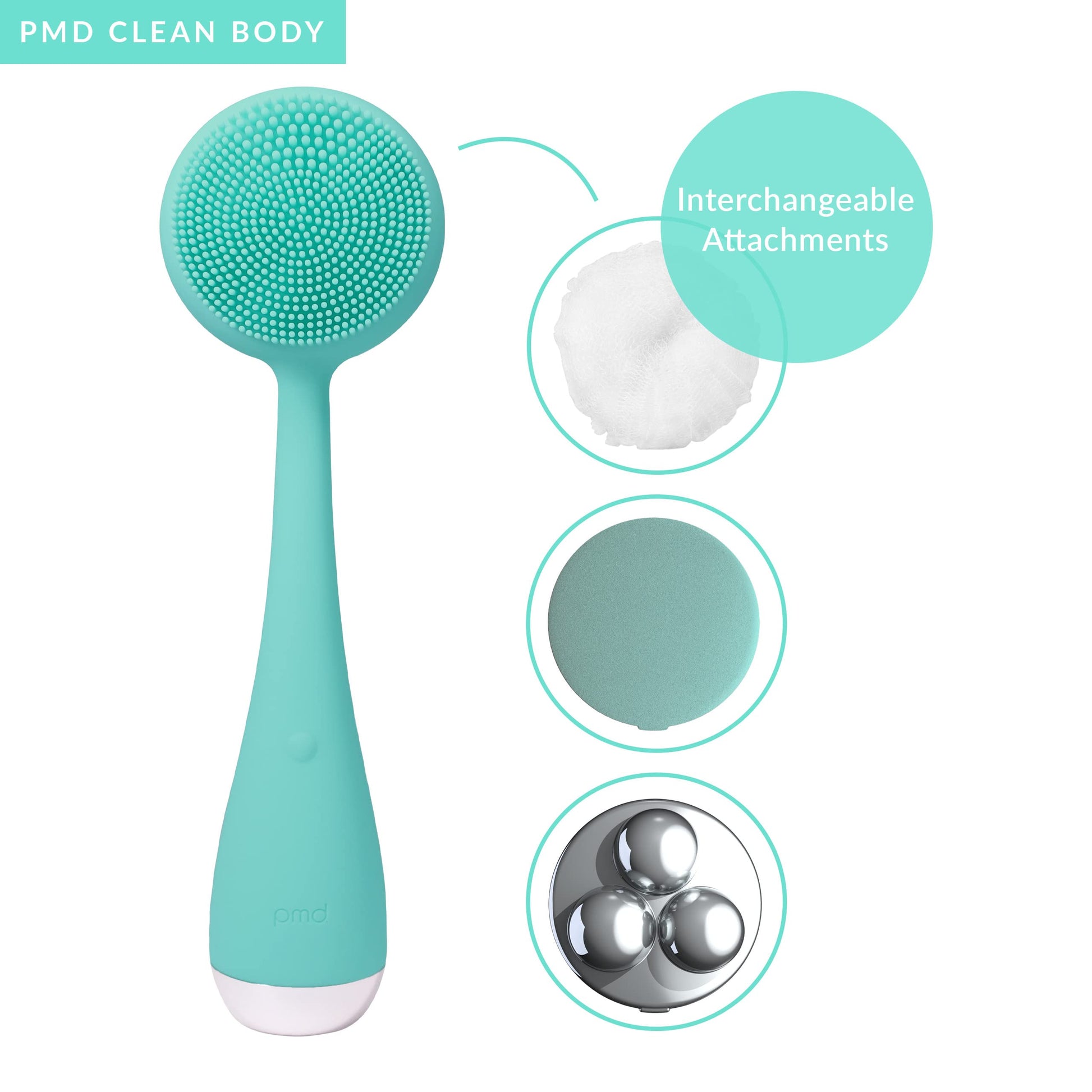 PMD Beauty Clean Body - Smart Body Cleansing Device with Silicone Brush & Three Interchangeable Attachments - Waterproof - SonicGlow Vibration - Cleanse,Exfoliate,& Massage Body