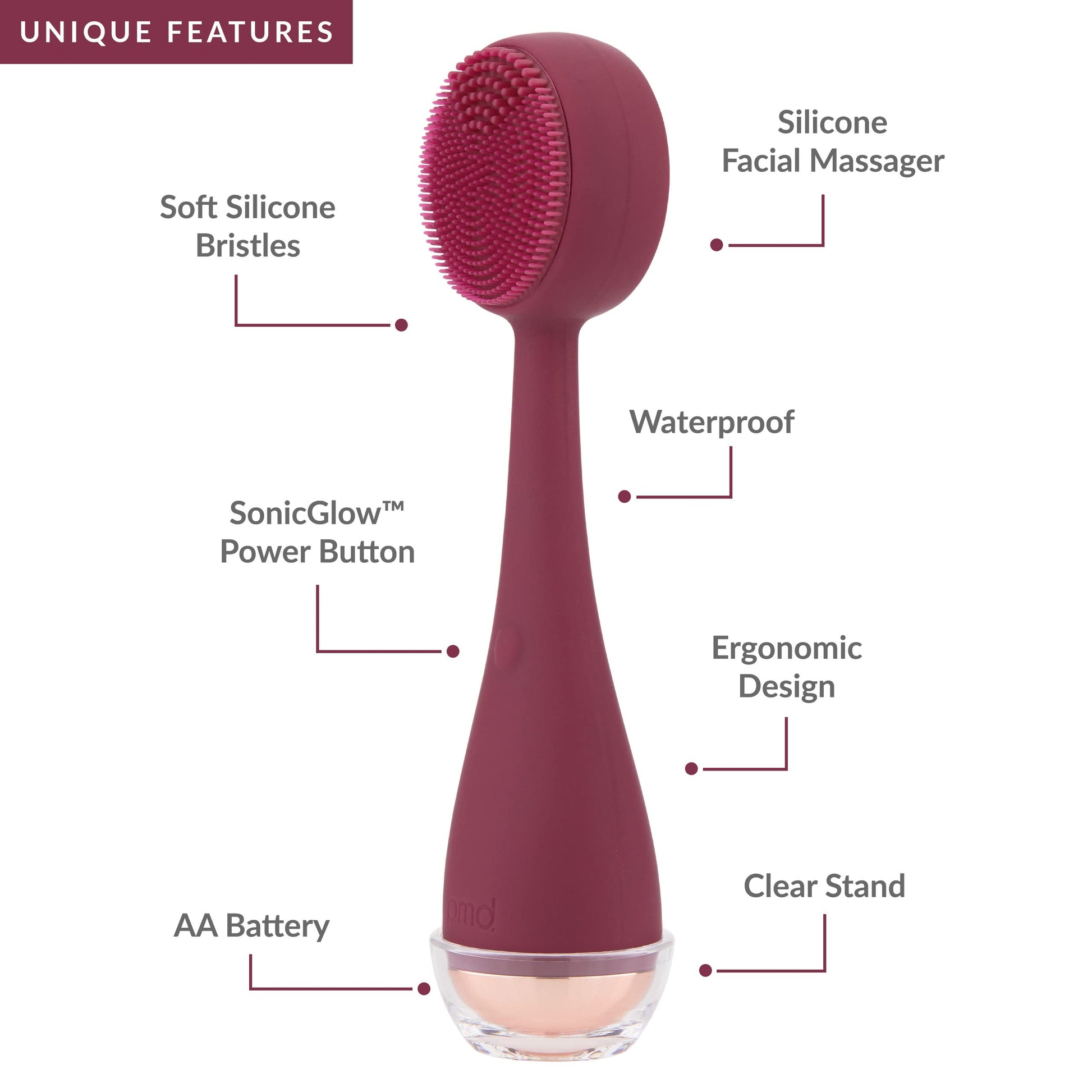 PMD Clean - Smart Facial Cleansing Device with Silicone Brush & Anti-Aging Massager - Waterproof - SonicGlow Vibration Technology - Clear Pores and Blackheads - Lift, Firm, and Tone Skin